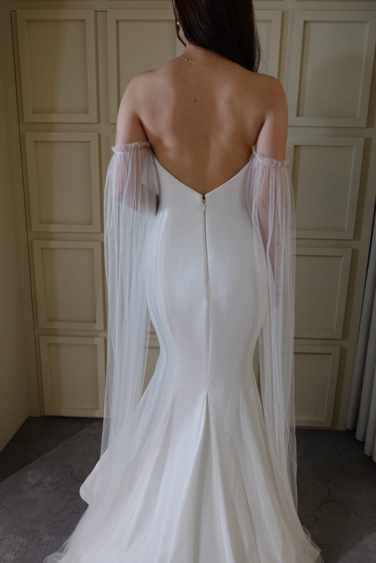 パーティードレス マーメイドライン セクシー ファスナー ふわふわ袖 結婚式 ブライダル