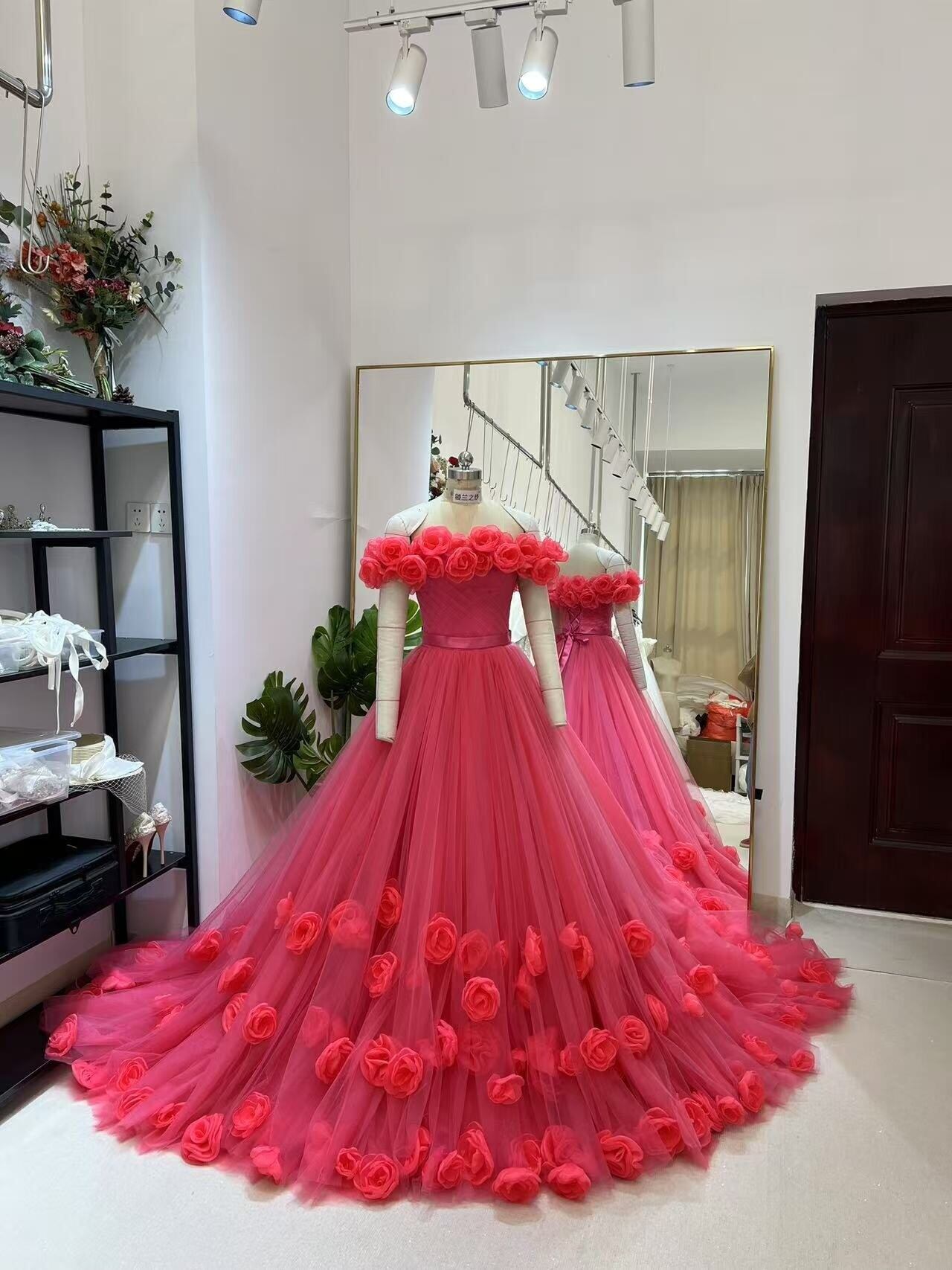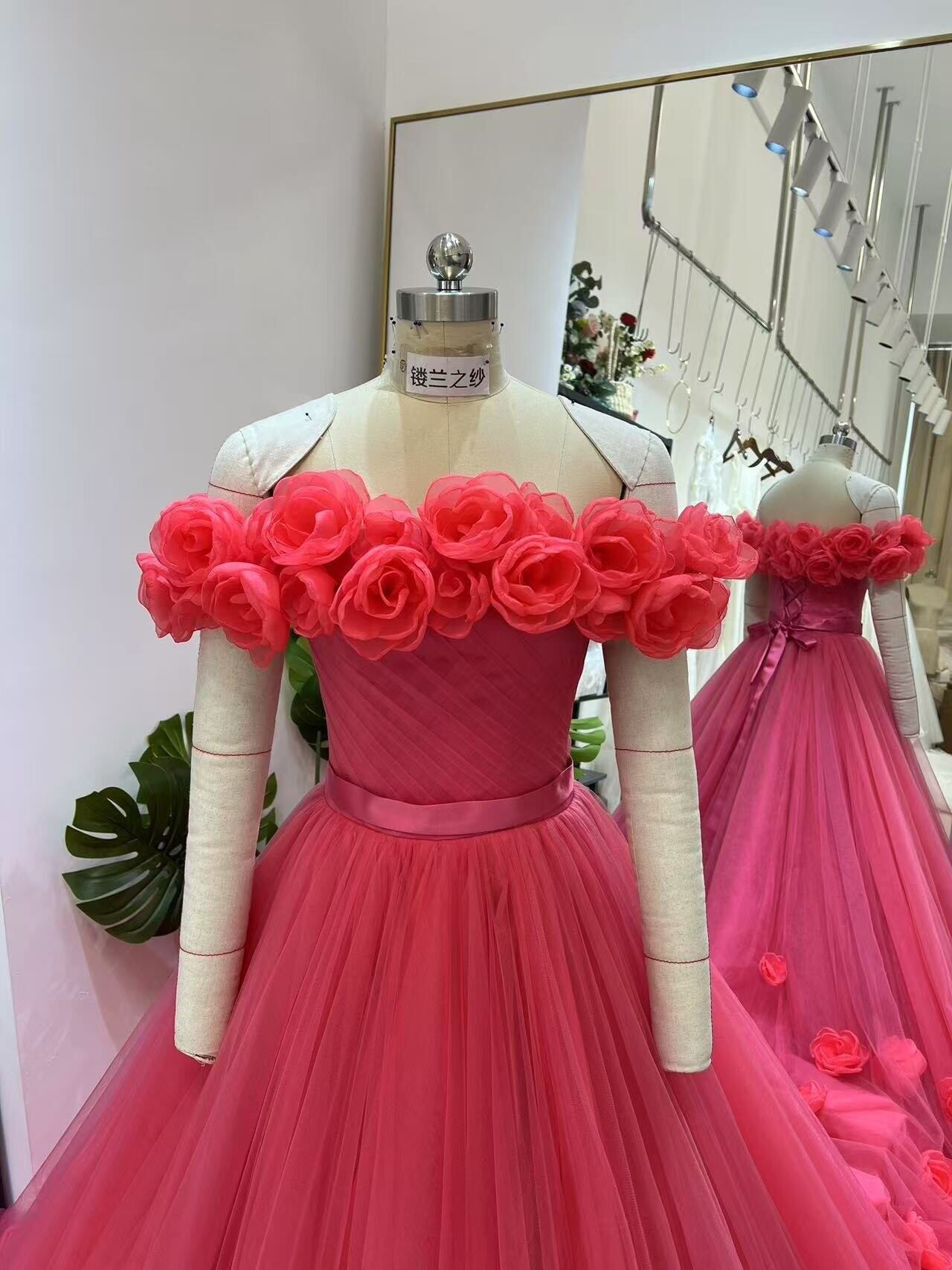 カラードレス バラトレーン ビビッドピンク プリンセスライン Aライン ブライダル 可愛い 花嫁