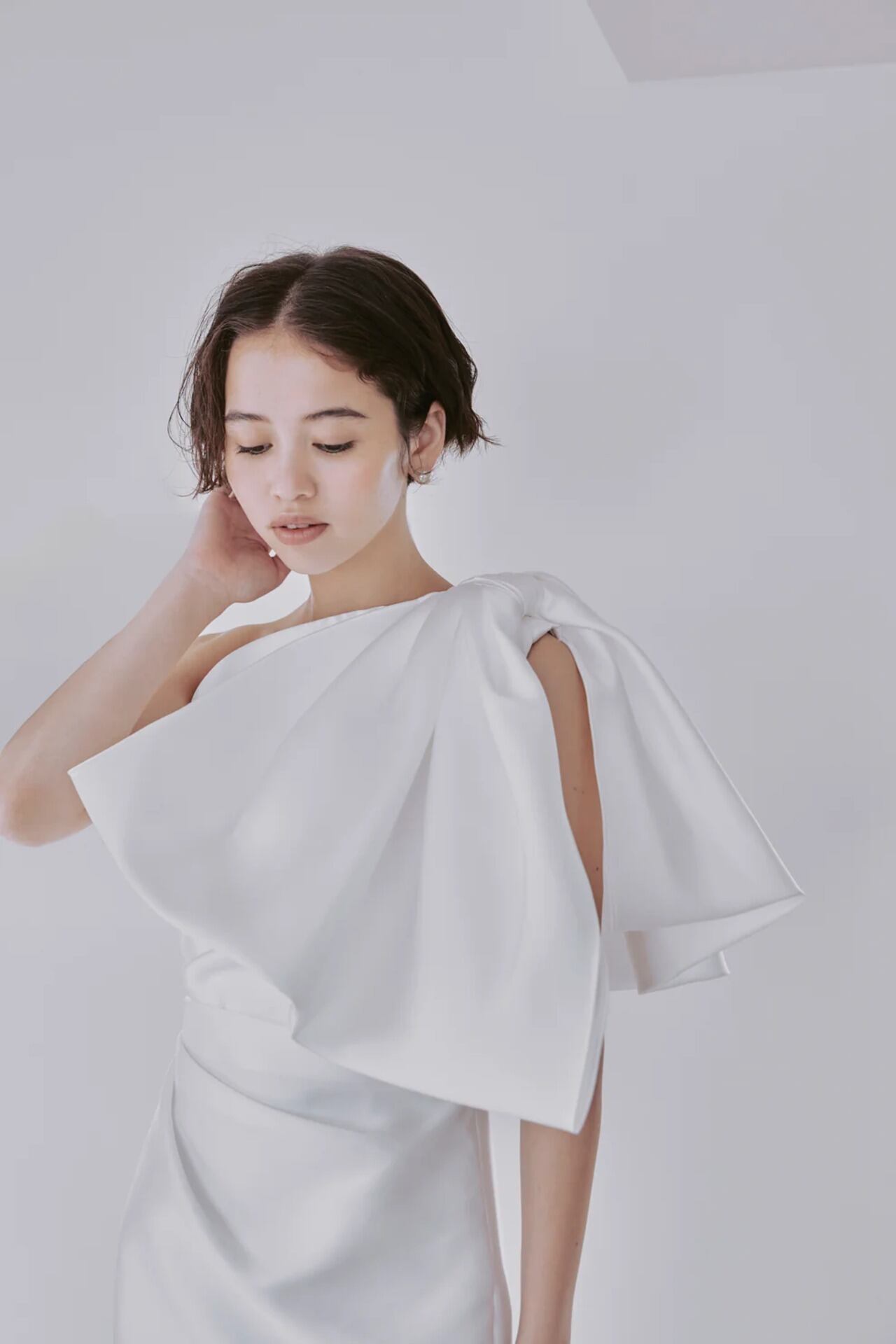 パーティードレス ウェディングドレス ワンショルダー マーメイドライン リボン 結婚式 二次会
