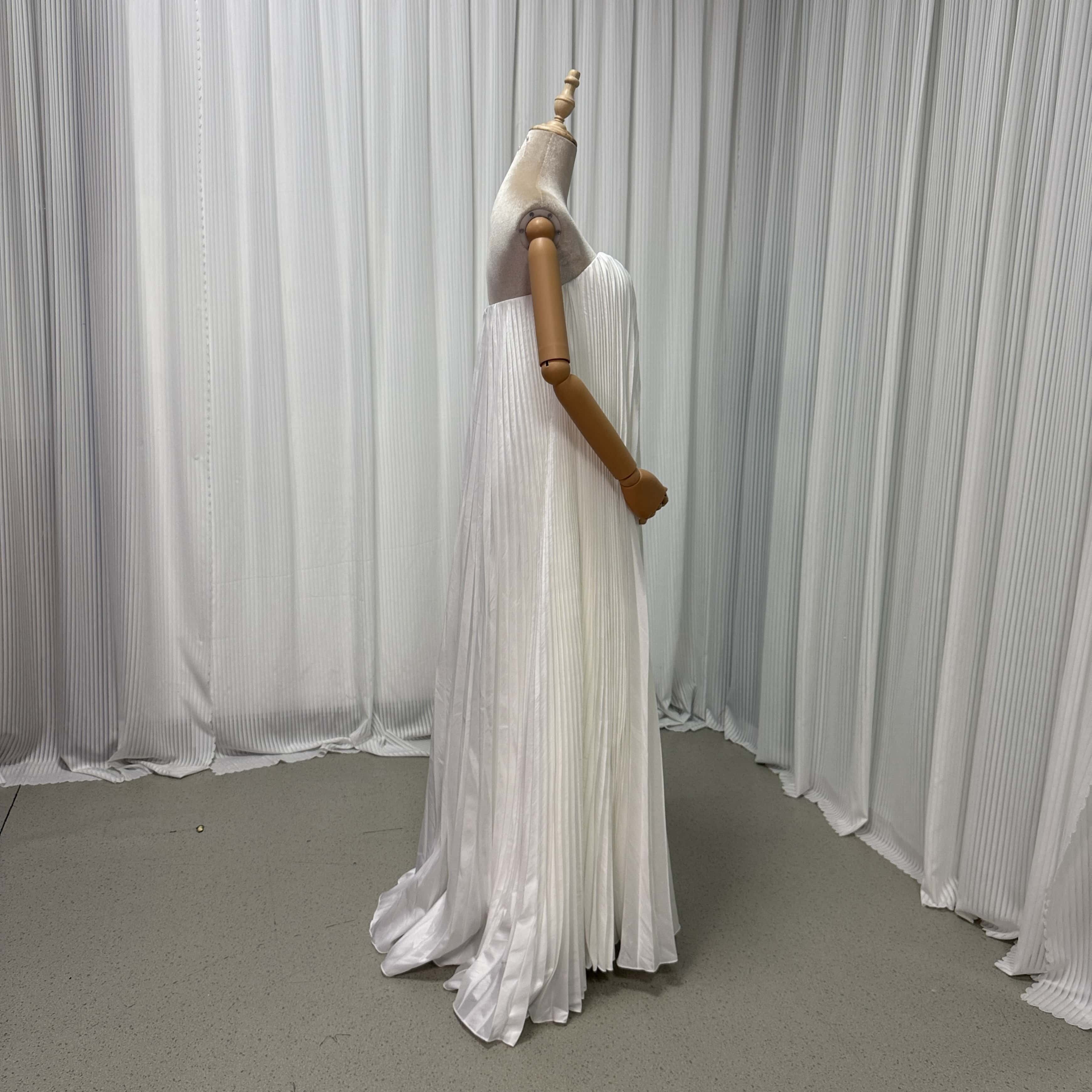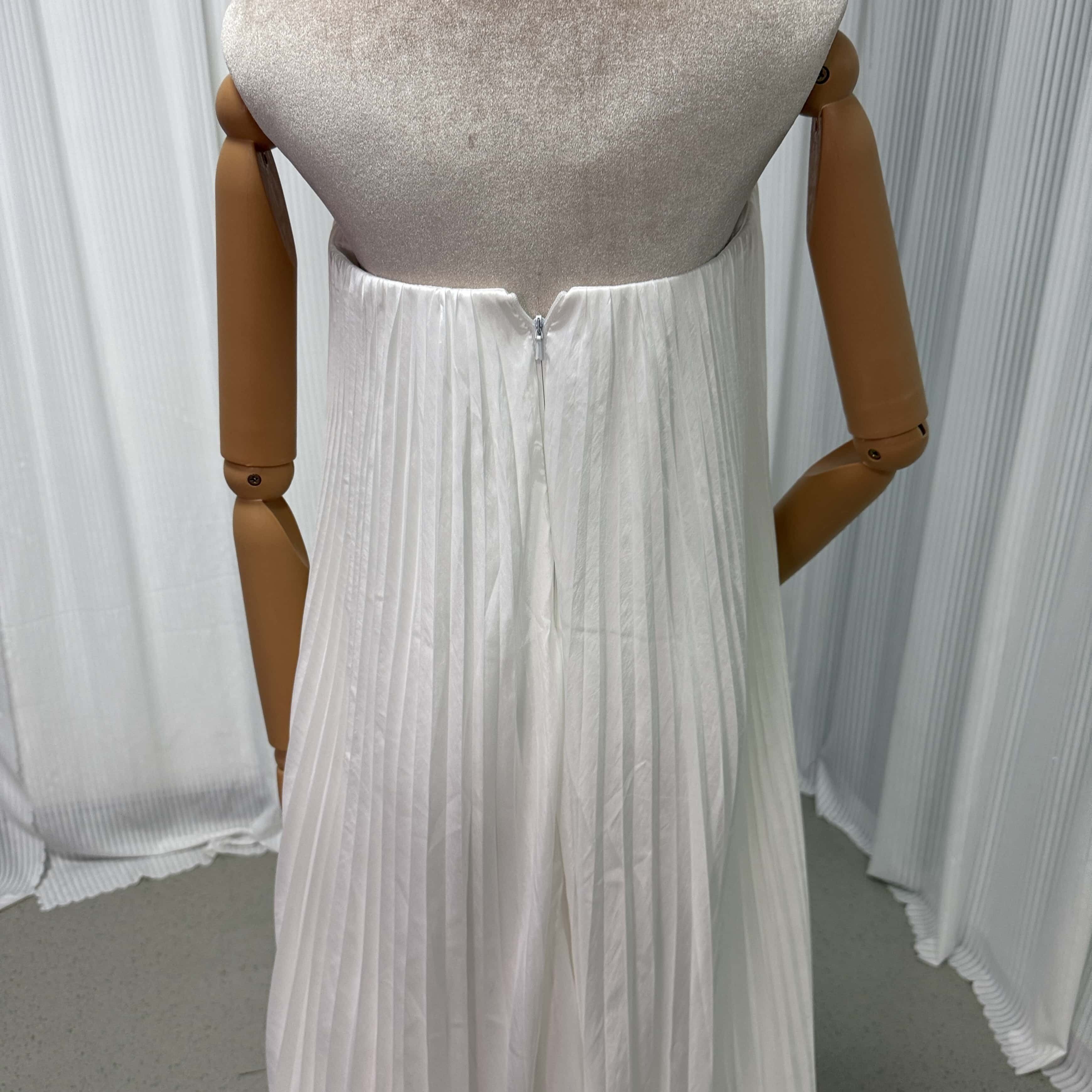 ウエディングドレスホワイト ファスナー ベアトップ プリーツドレス トレーン/ロング