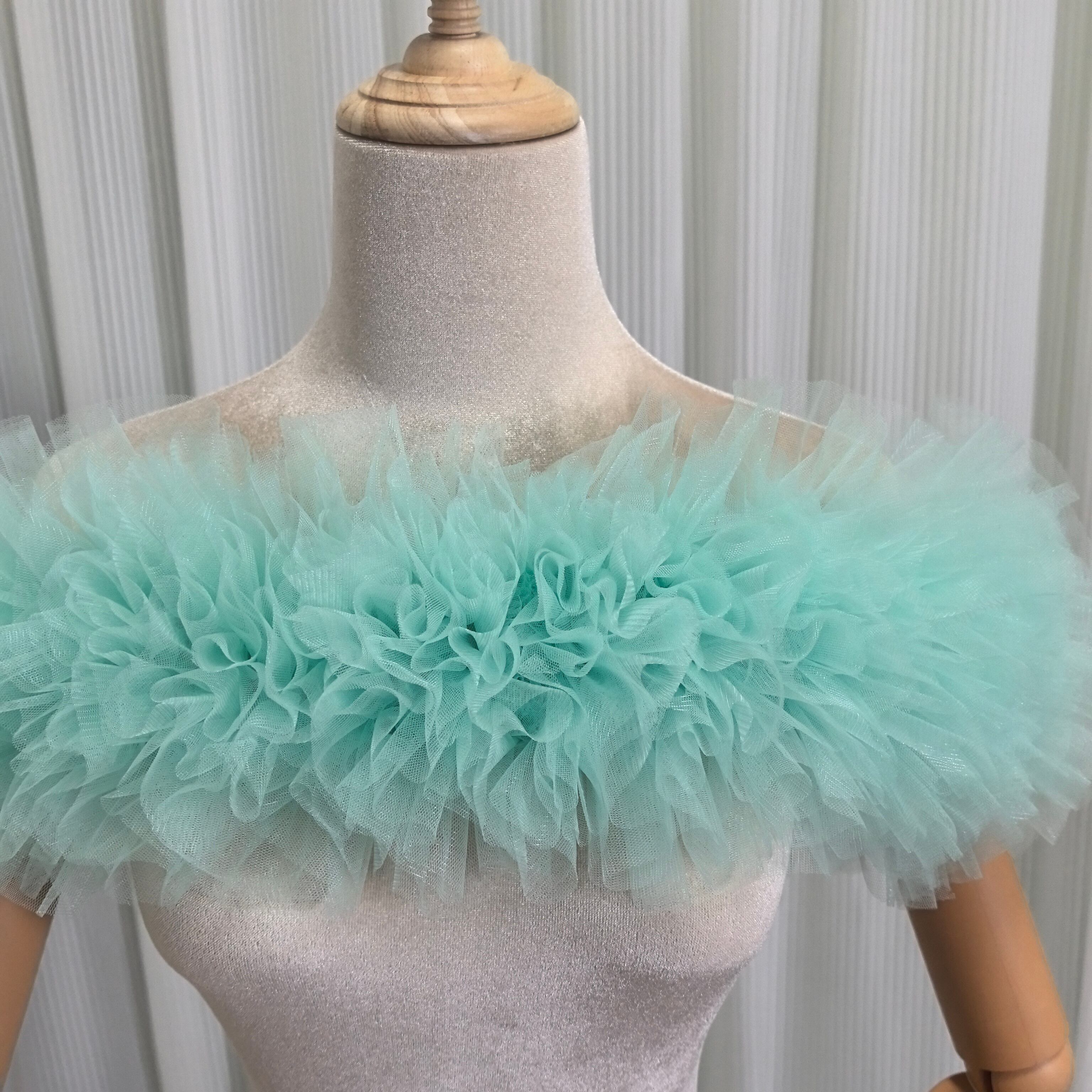 カラードレス 青/ブルー ソフトチュール 取り外しオフショルダー