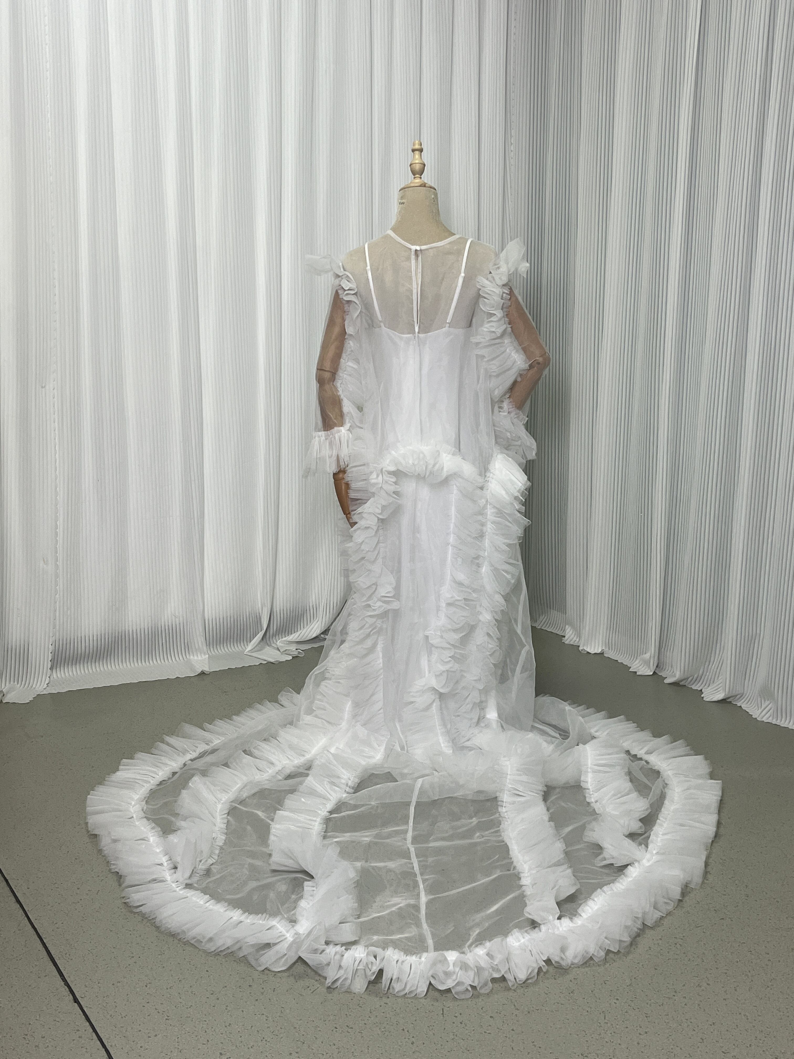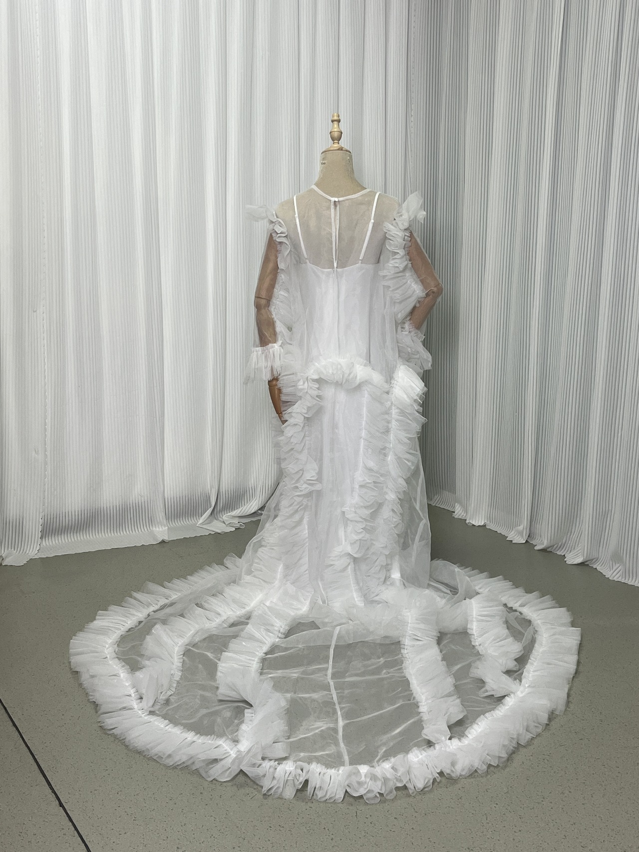 ウエディングドレス ホワイト ソフトチュール マタニティ 揺らめく裾 クルーネック 2点セット