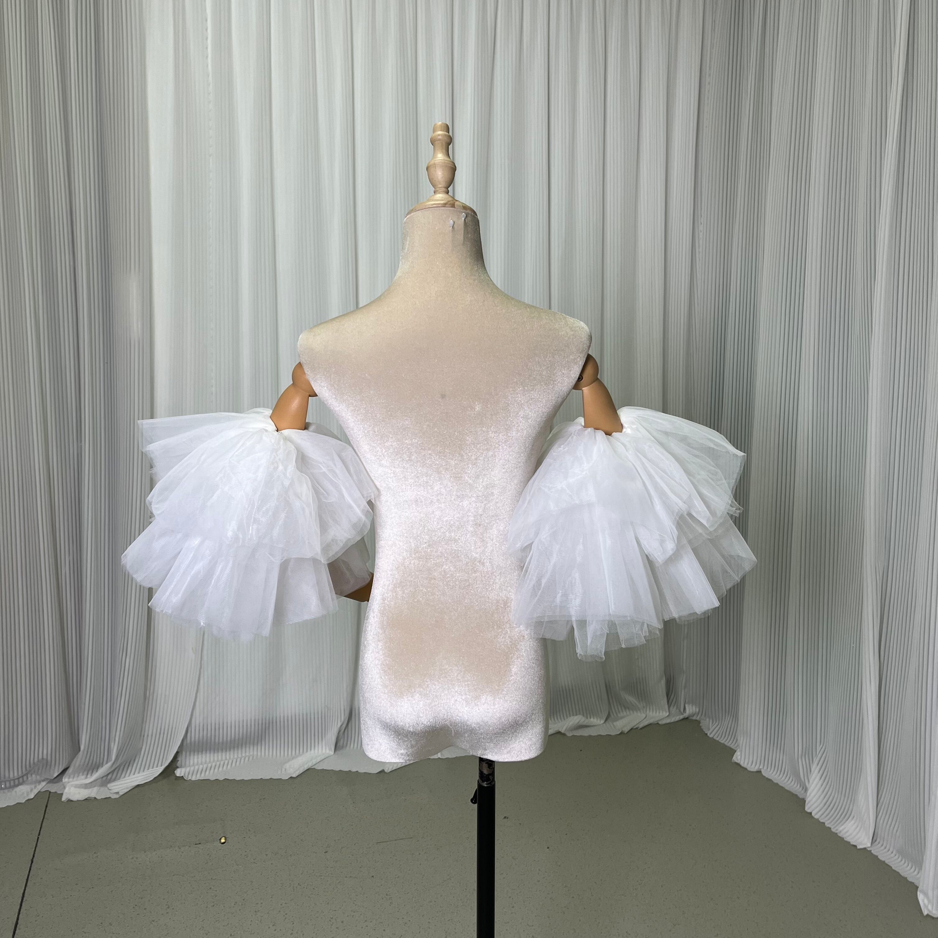 ウエディングドレス ホワイト 豪華! エレガント ソフトチュール 取り外し袖