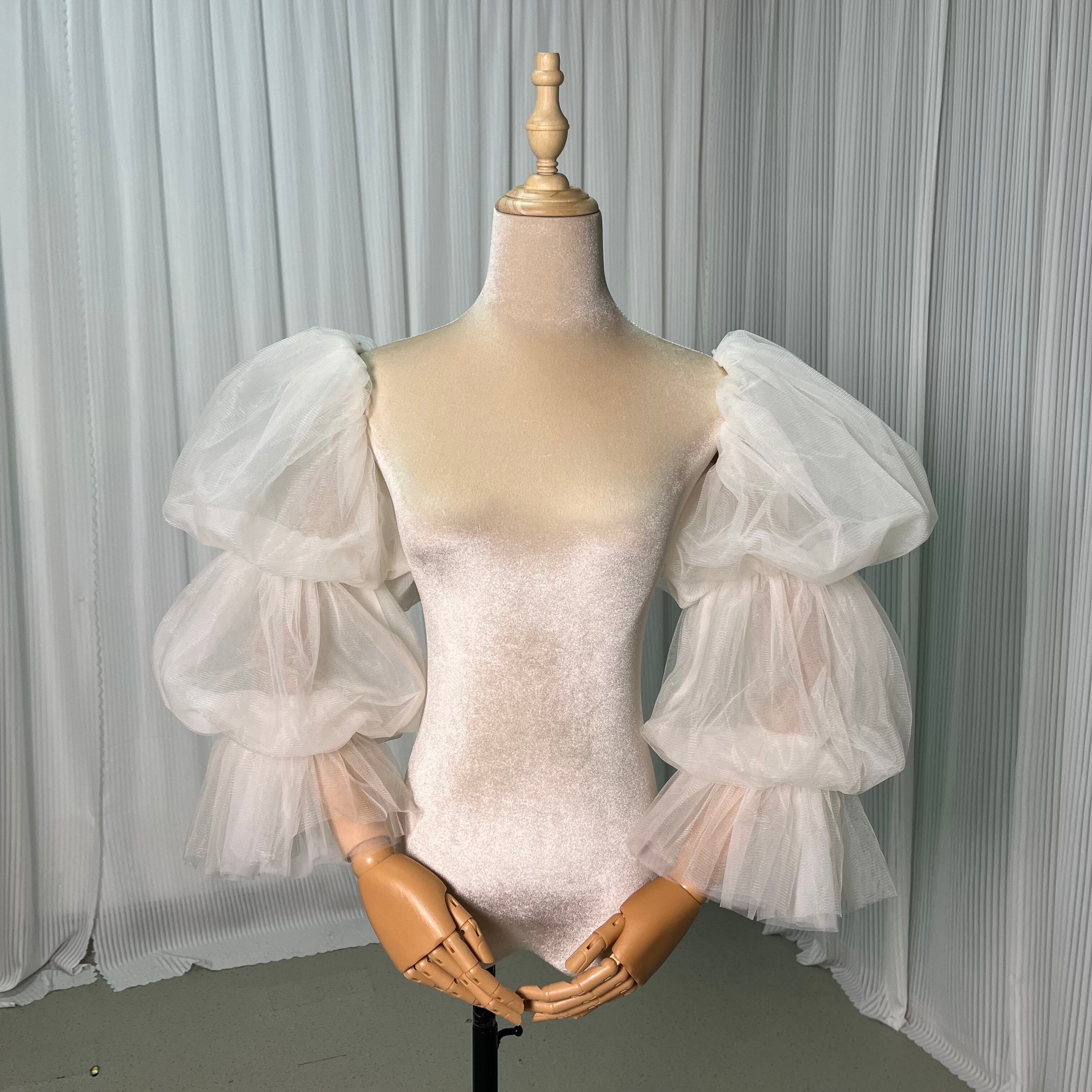 ウエディングドレス アイボリー ソフトチュール エレガント 取り外し袖
