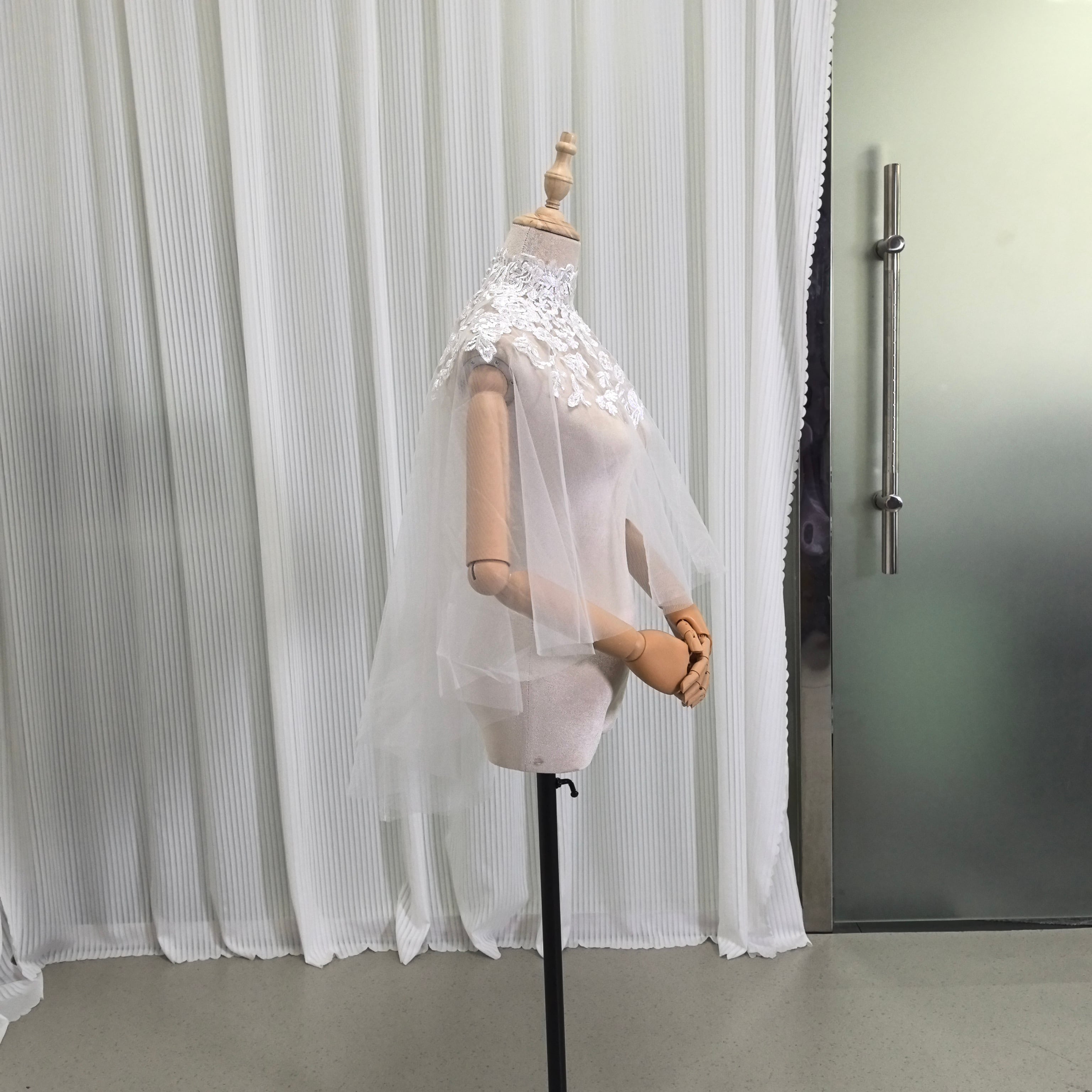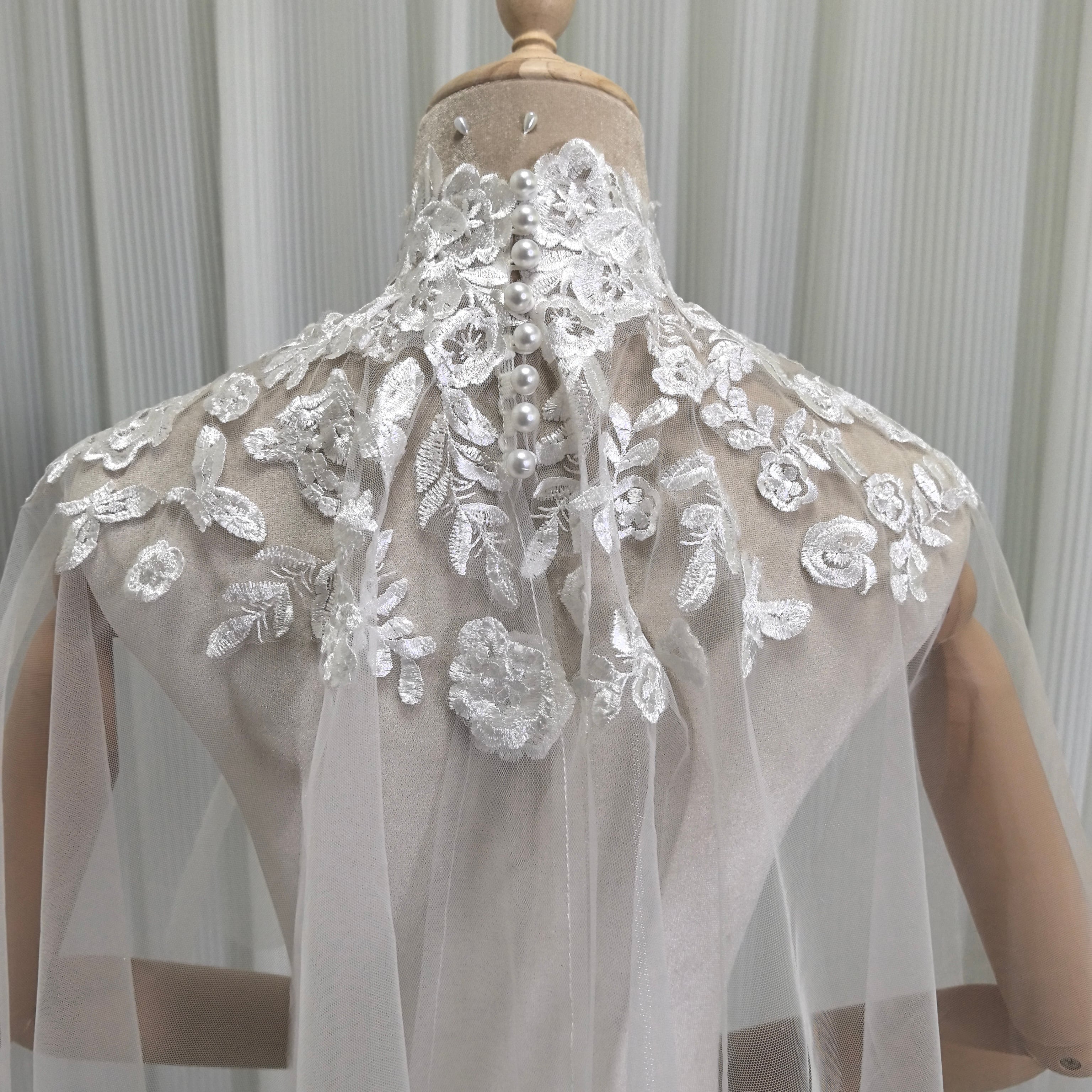 ウエディングドレス ホワイト クラシカル 繊細レース ハイネック ケープ