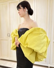 カラードレス ブラック ベアトップ 取り外しオフショルダー 上品!有品位 マーメイドライン 短トレーン