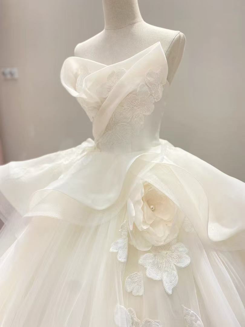 ウエディングドレス オフホワイト ベアトップ フリルドレス 豪華! 憧れのドレス ソフトチュール