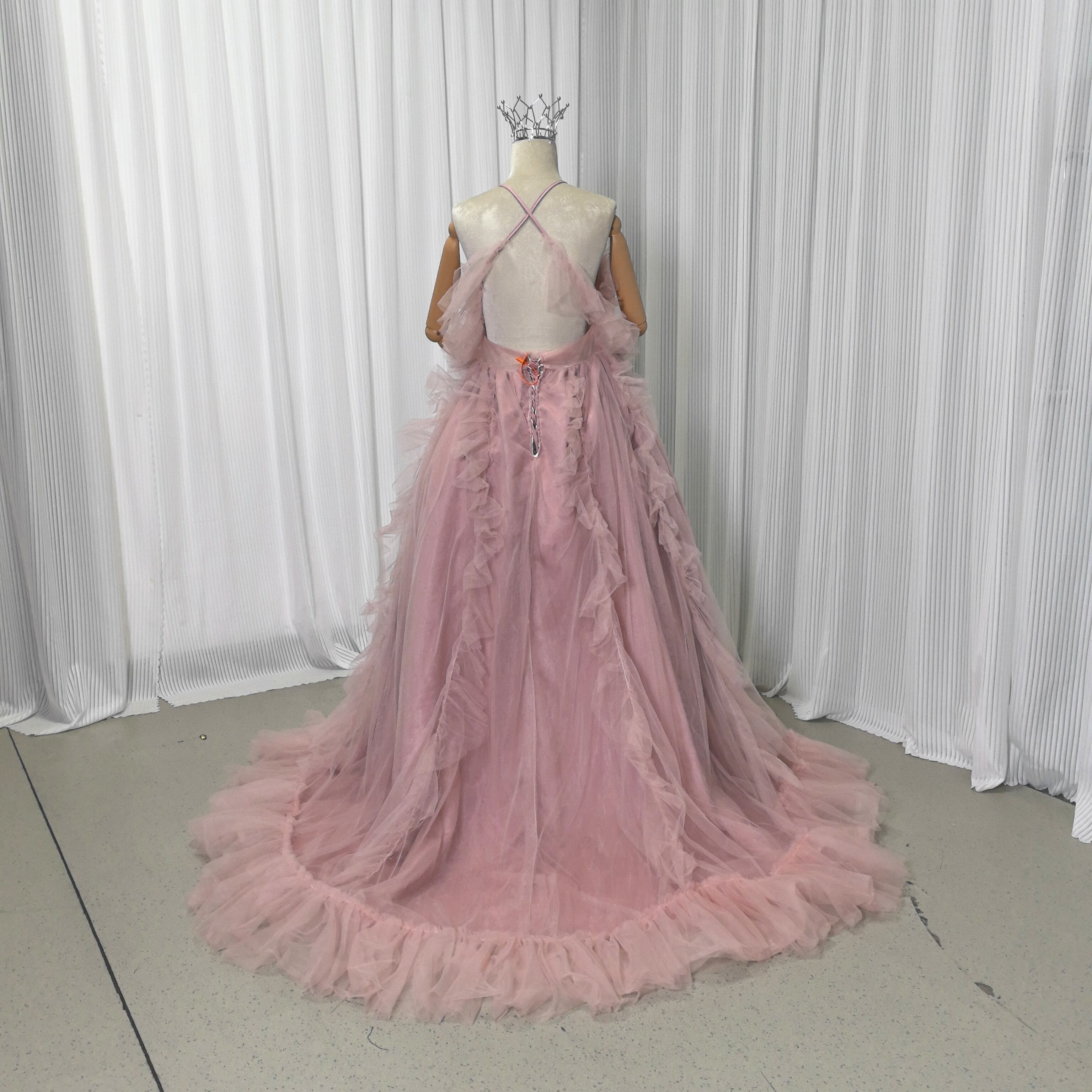 カラードレス ピンク キャミソール ソフトチュール 編み上げ バックレス リボントレーン