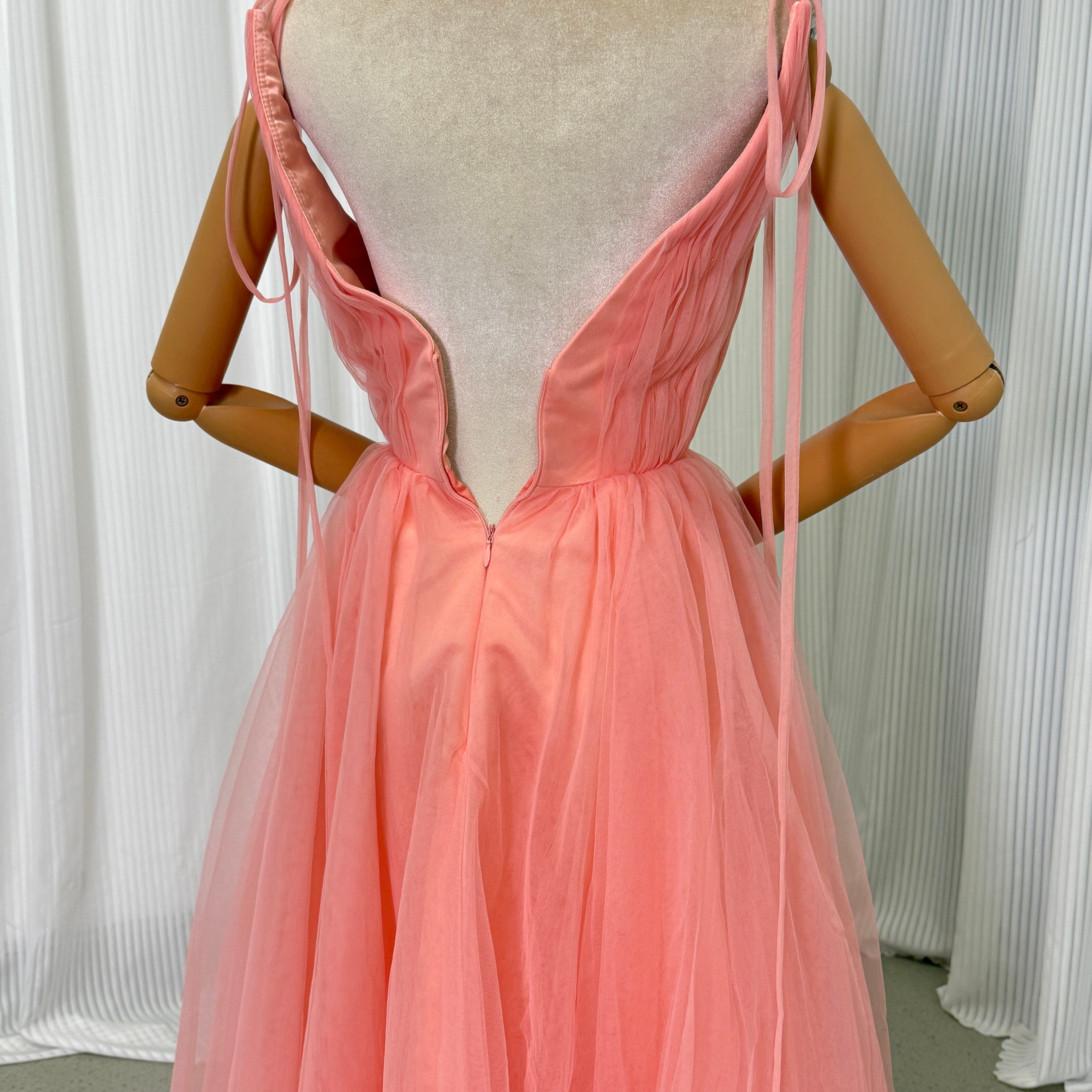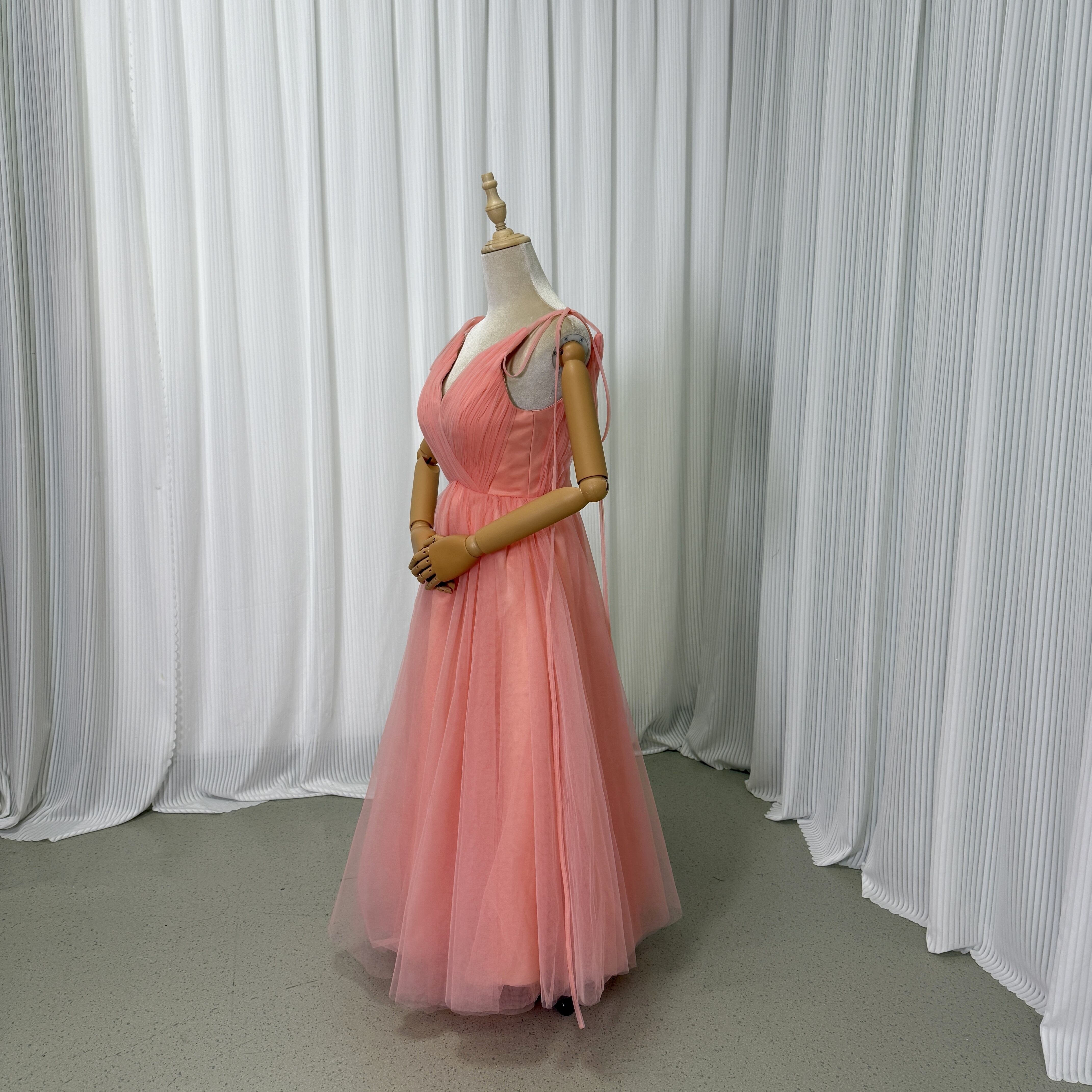 カラードレス 薄ピンク キャミソール Vネック バックレス スレンダーライン 可憐な チュールドレス