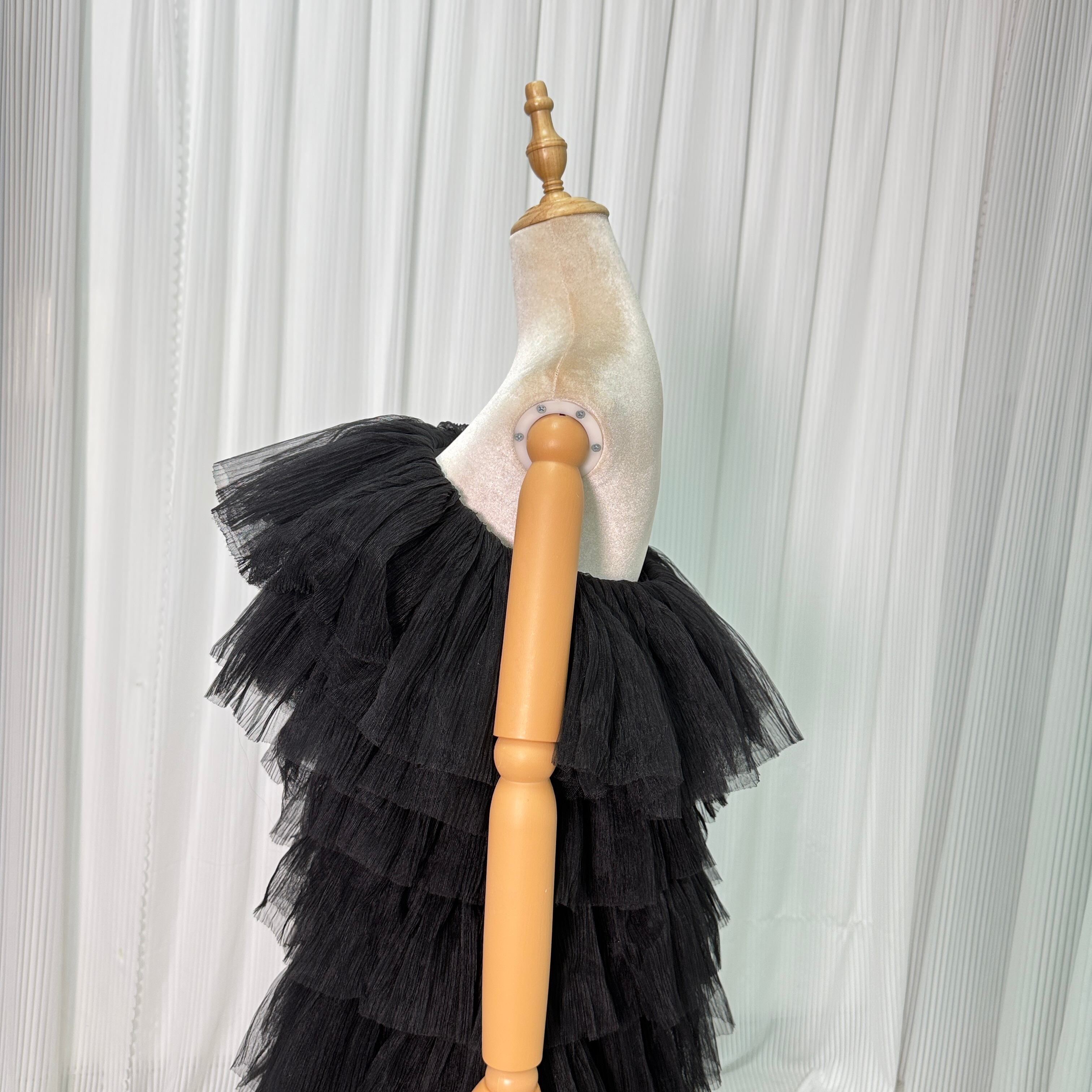 カラードレス ブラック ベアトップ バックレス 花嫁 スリット レイヤードドレス ミニトレーン