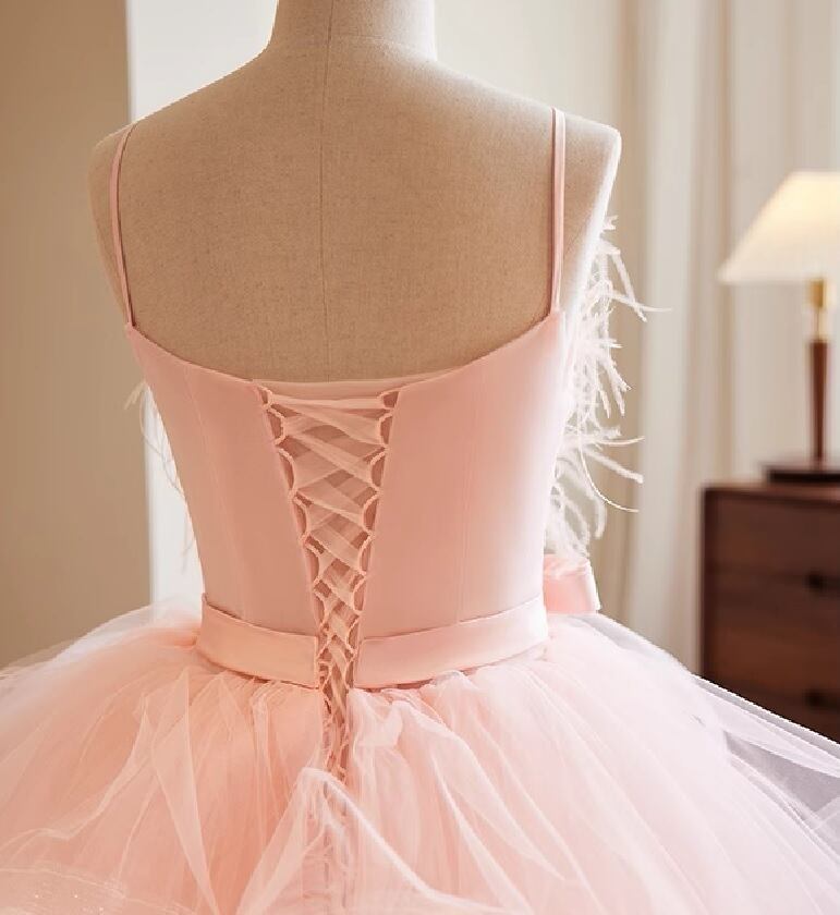 カラードレス ピンク キャミソール ビーズ サッシュベルト 柔らかく重ねたチュールスカート 華やかなトレーン