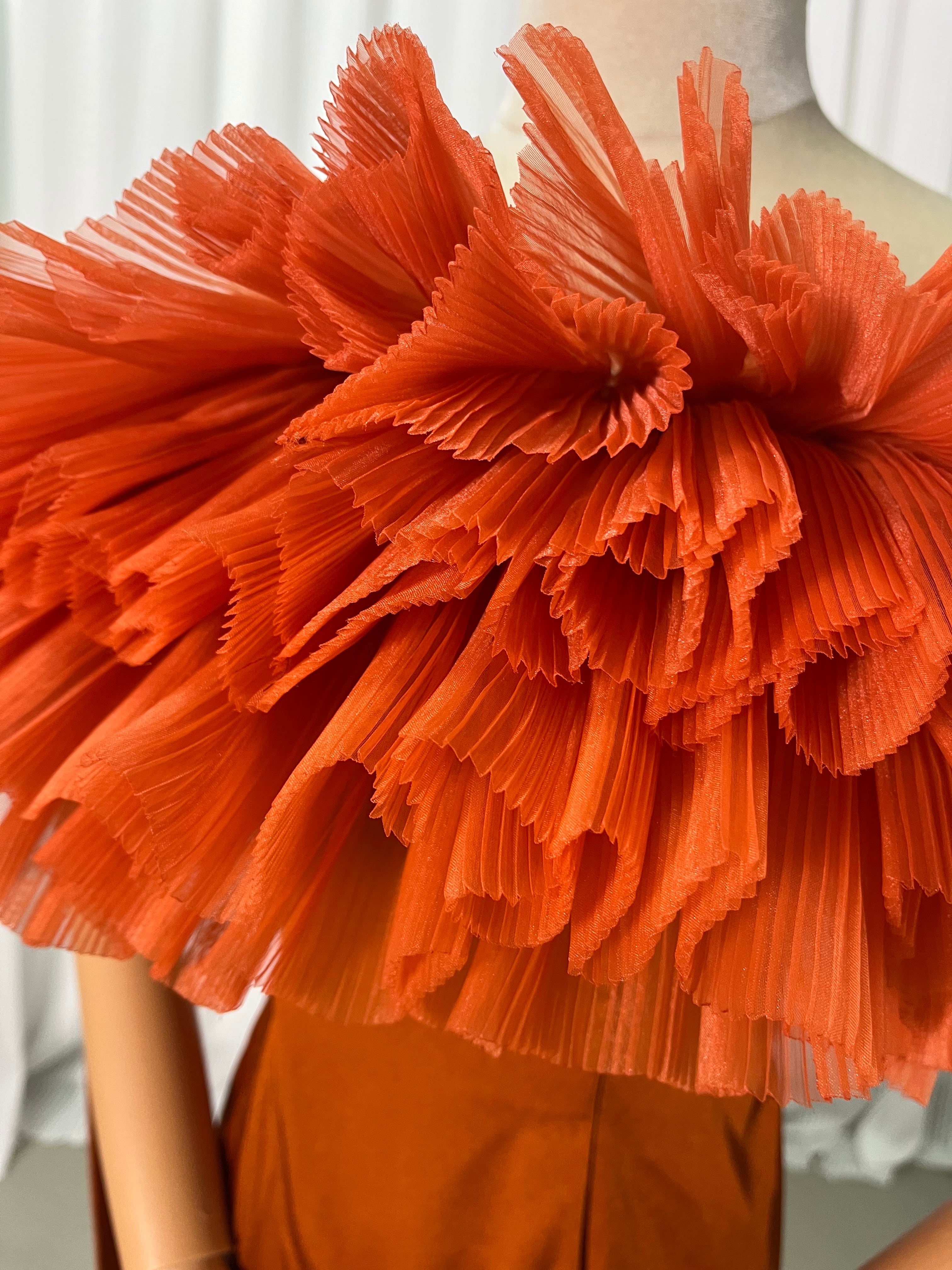カラードレス テラコッタ ファスナー トレーン オフショルダー 演奏会/音楽会 アンティークなドレス