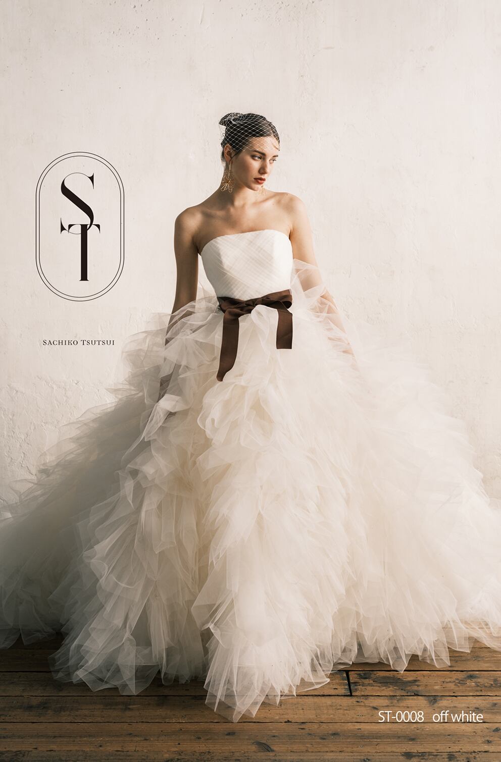 ウエディングドレス オフホワイト サッシュベルト 取り外しオフショルダー 柔らかく重ねたチュールスカート フレアスカート