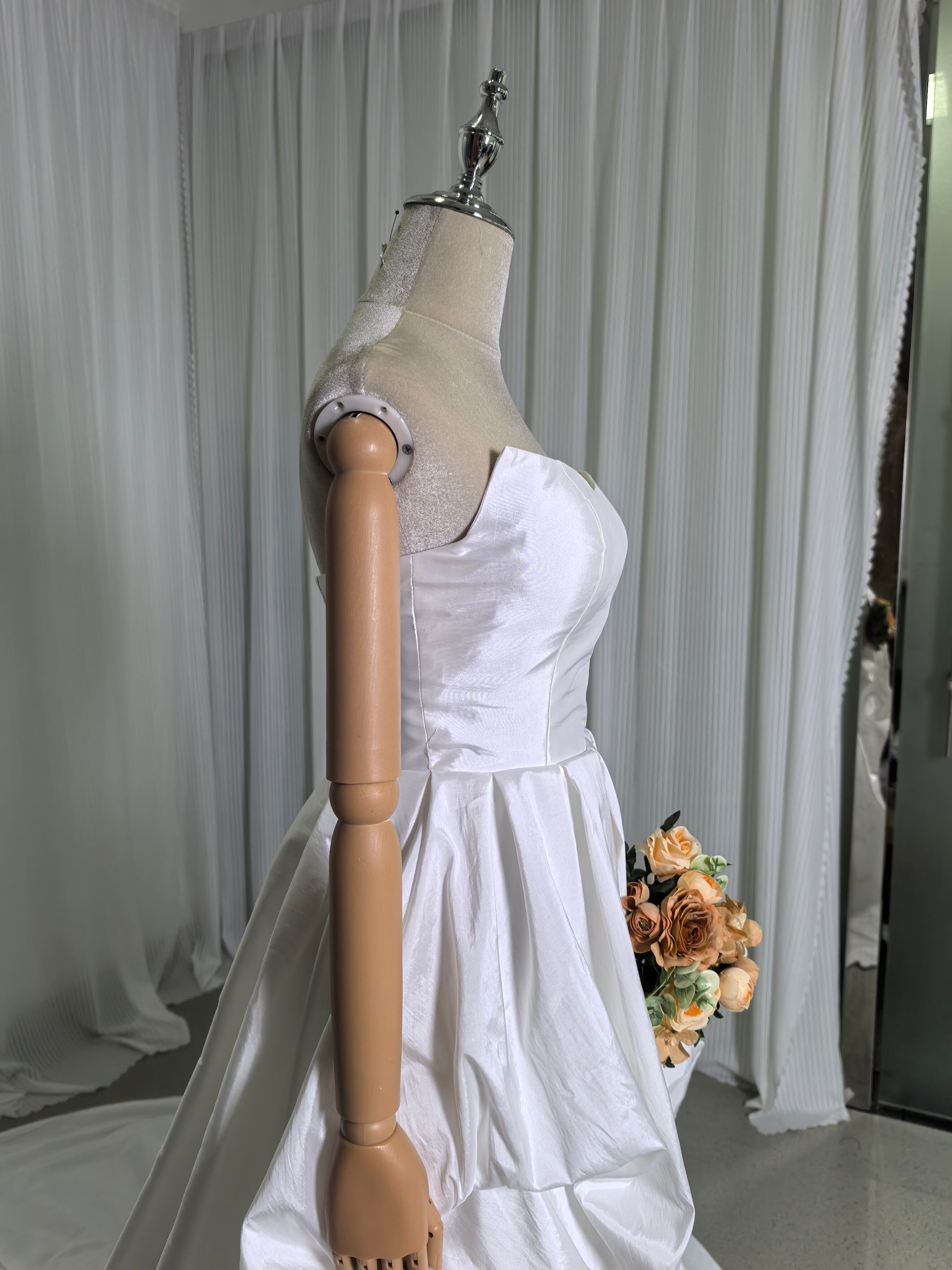 実例写真! ウエディングドレス ホワイト チューブトップ ファスナー シルクタフタ 短トレーン 結婚式/披露宴 フィッシュテール ロングドレス