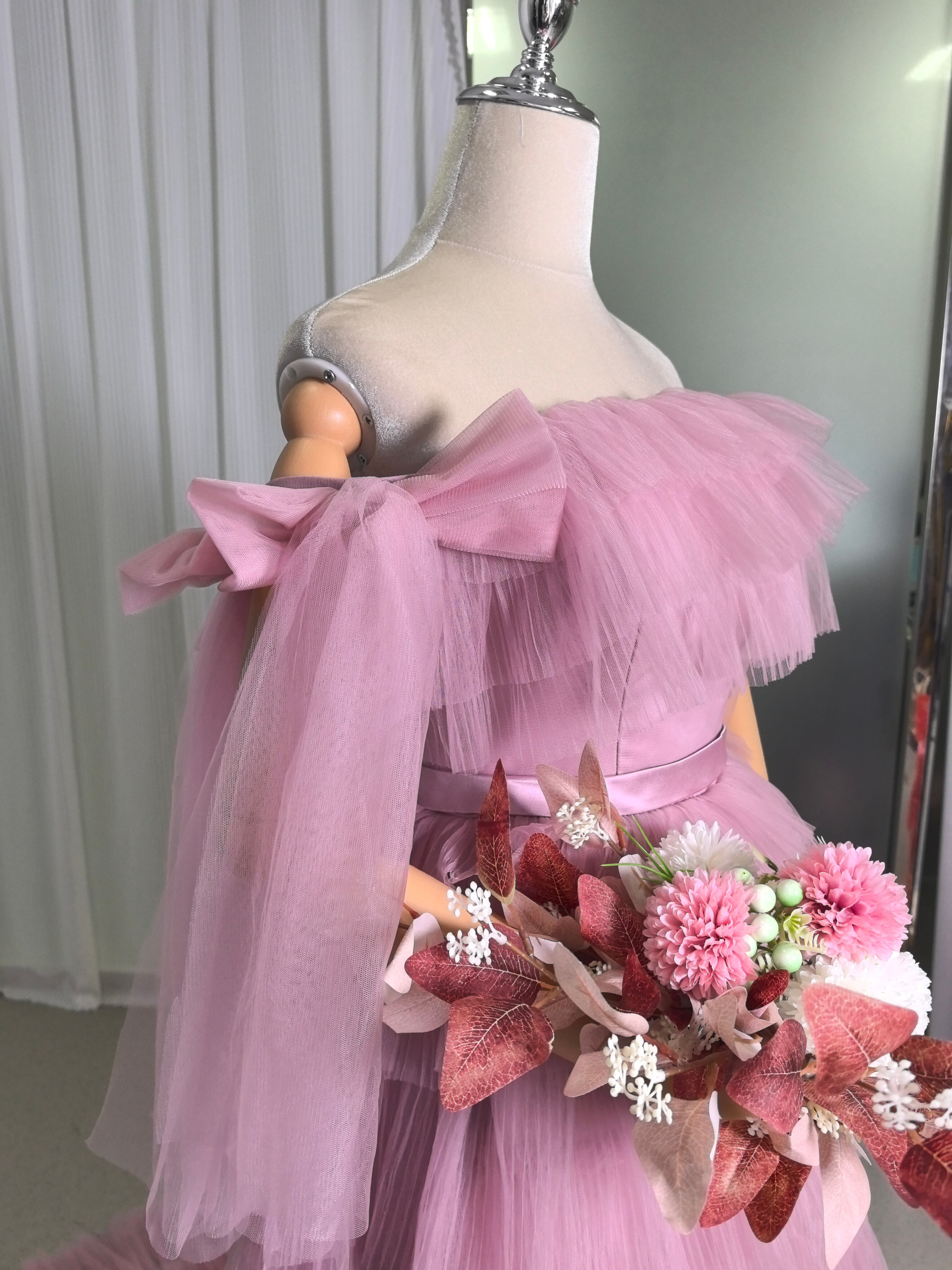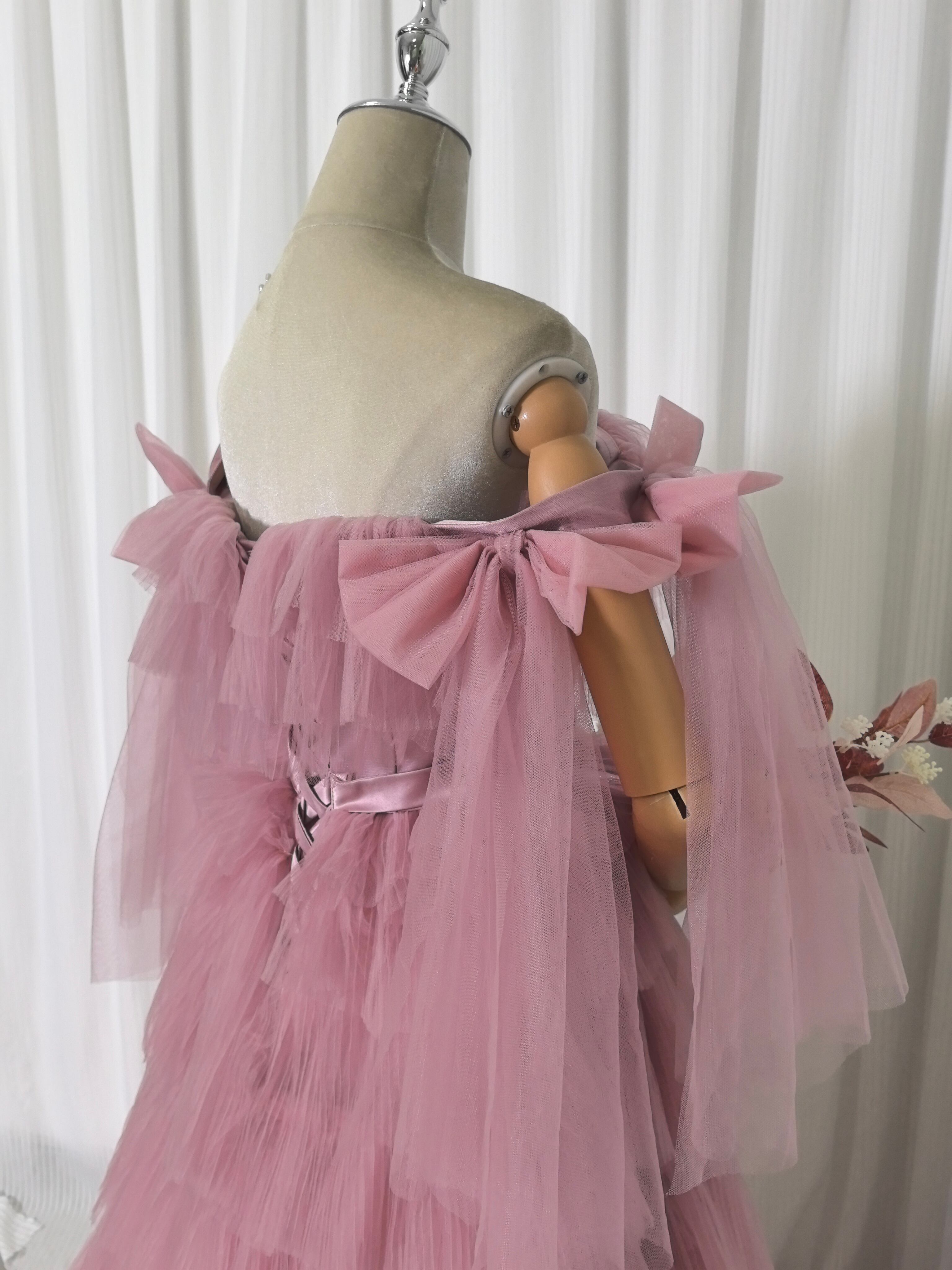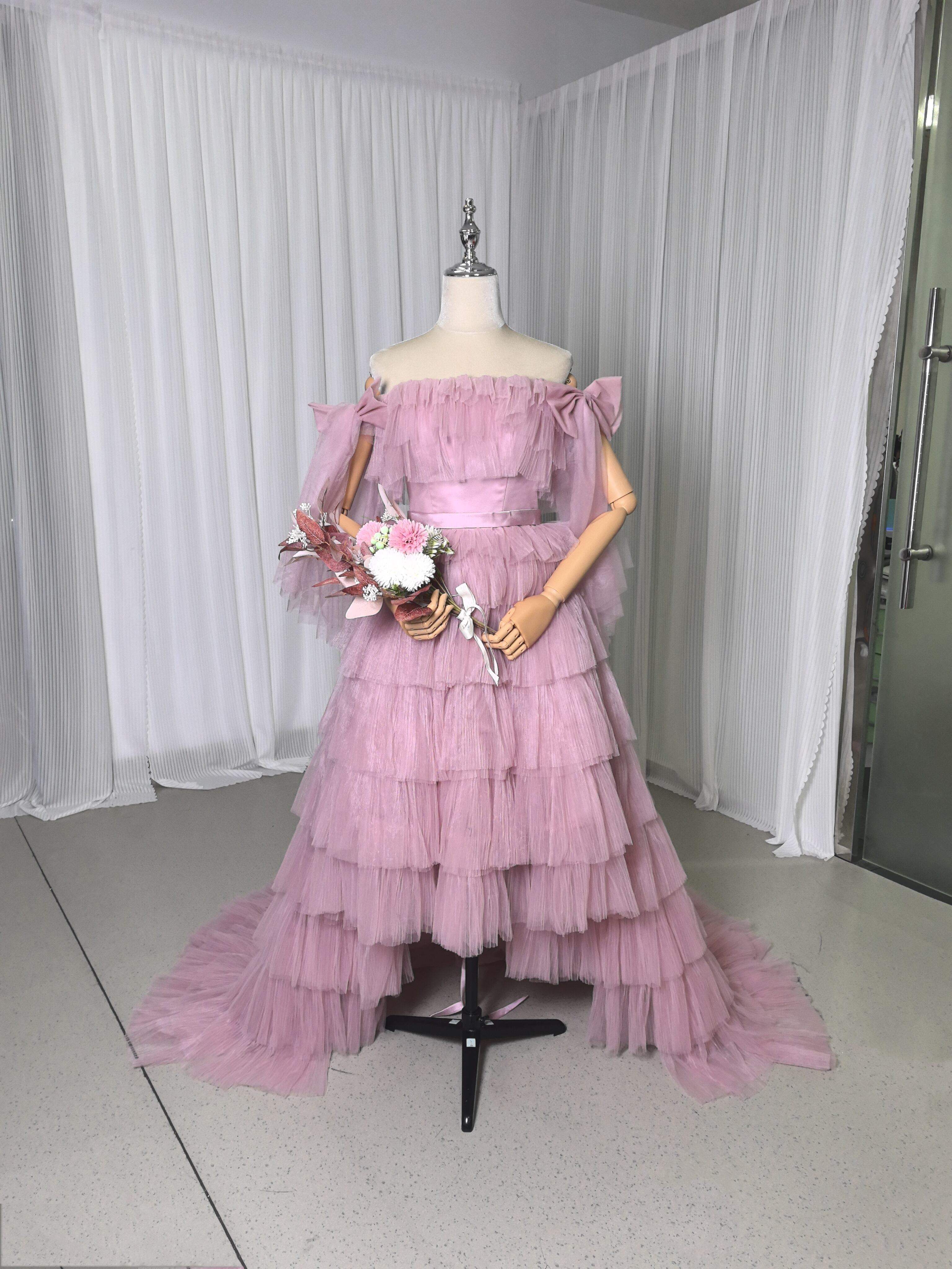 カラードレス ピンク ベアトップ ビスチェタイプ 取り外しオフショルダー ソフトチュール プリンセスライン 花嫁 レイヤードドレス
