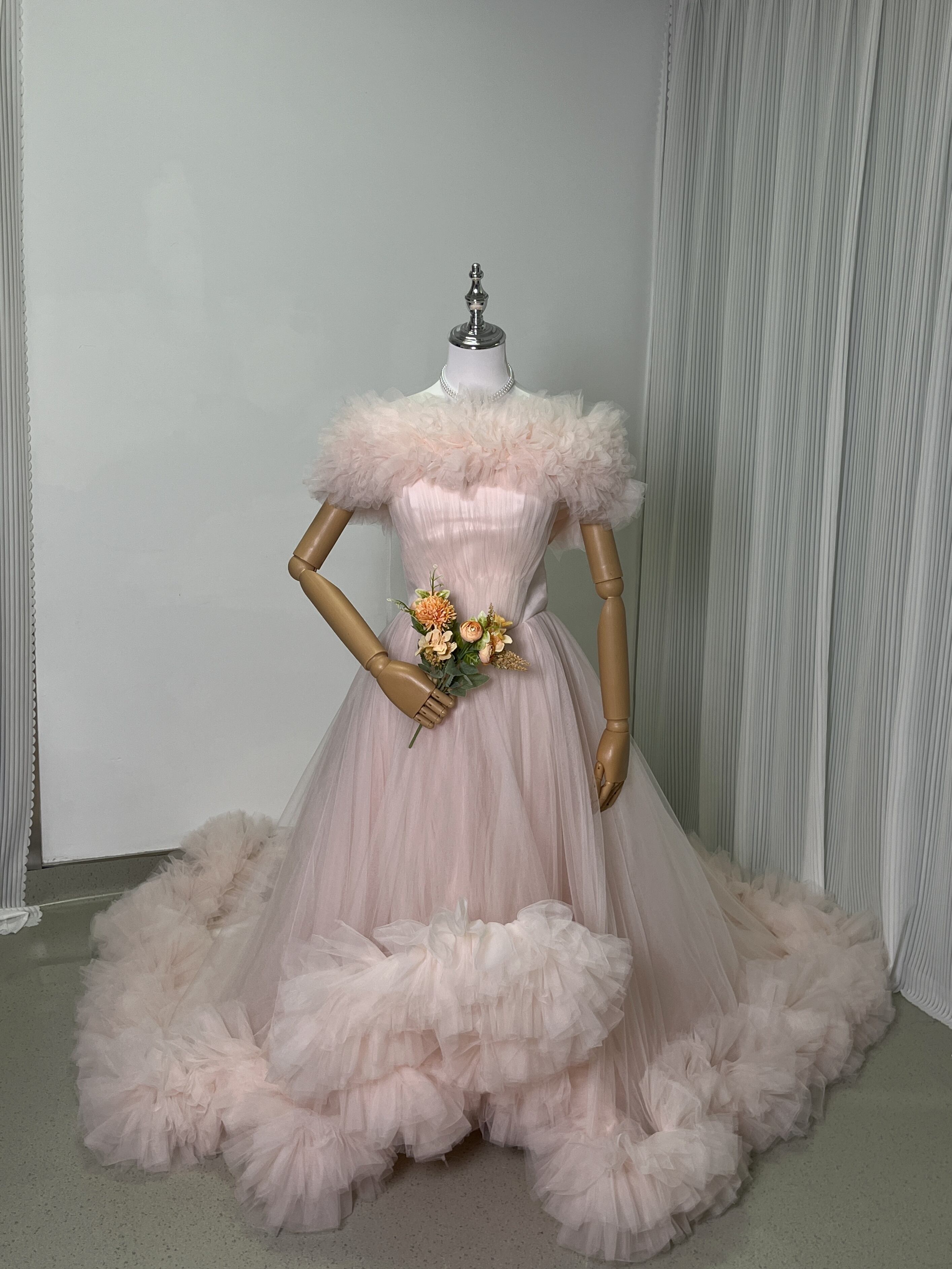 カラードレス ピンク オフショルダー プリンセスライン フィッシュテール 編み上げ 上品! 憧れのドレス フレアスカート