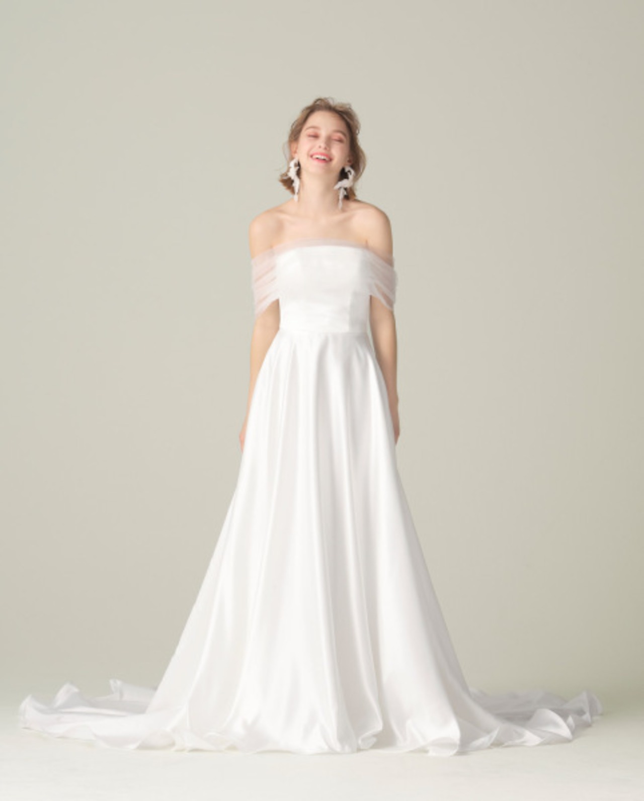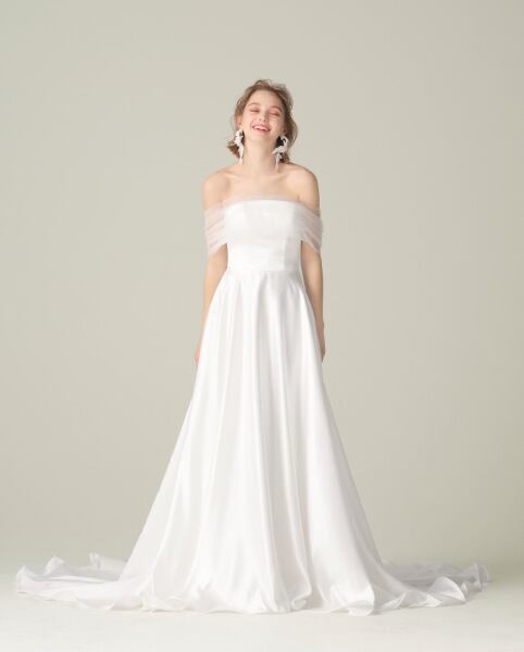 ウエディングドレス ホワイト オフショルダー 華やかなトレーン 結婚式/披露宴 ソフトチュール 憧れのドレス