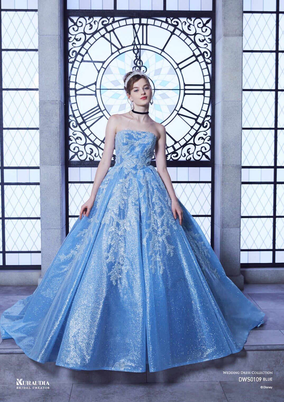 カラードレス 爽やかで優しいブルー 取り外し袖 キラキラグリッターチュール ベアトップ 繊細レース 華やかなトレーン プリンセスライン