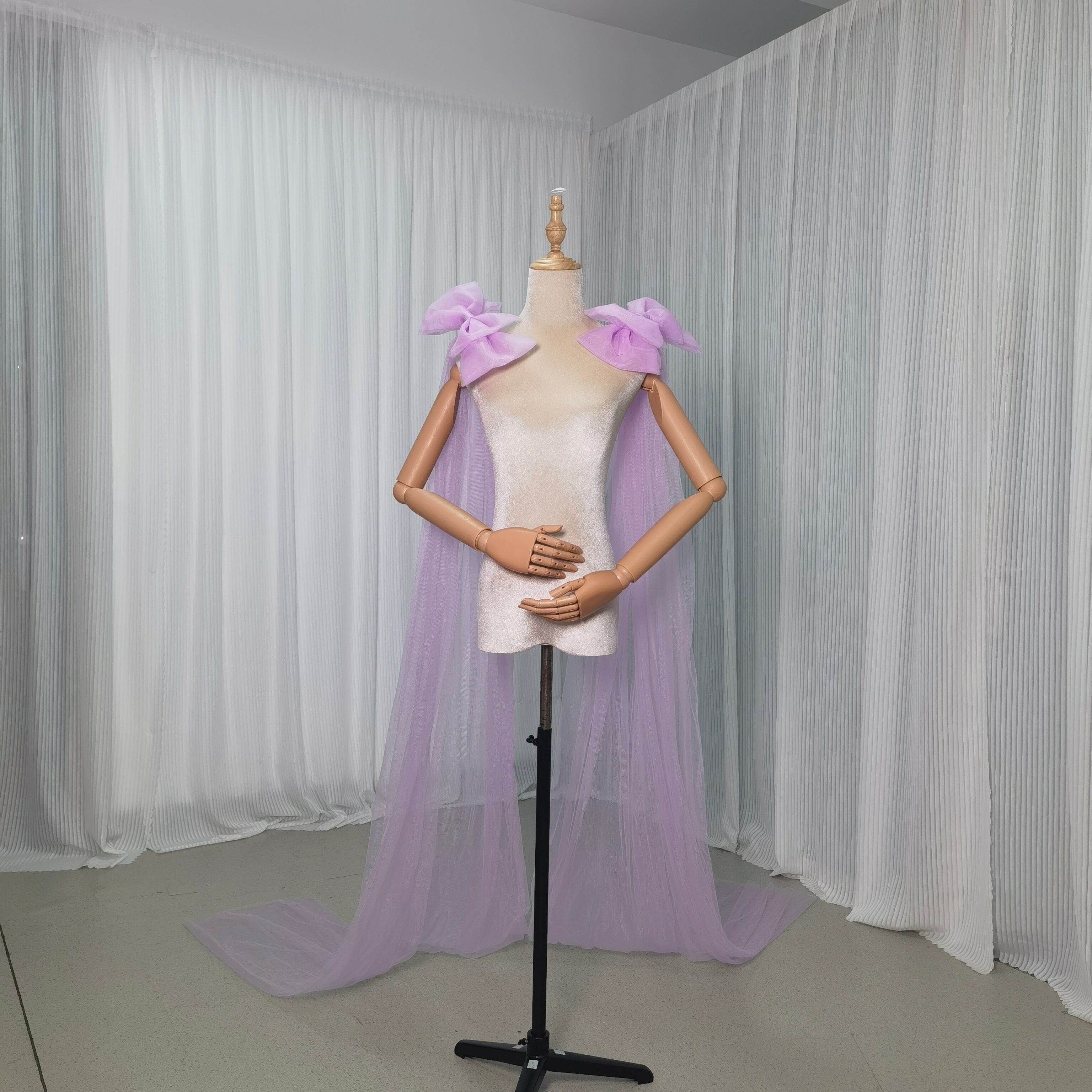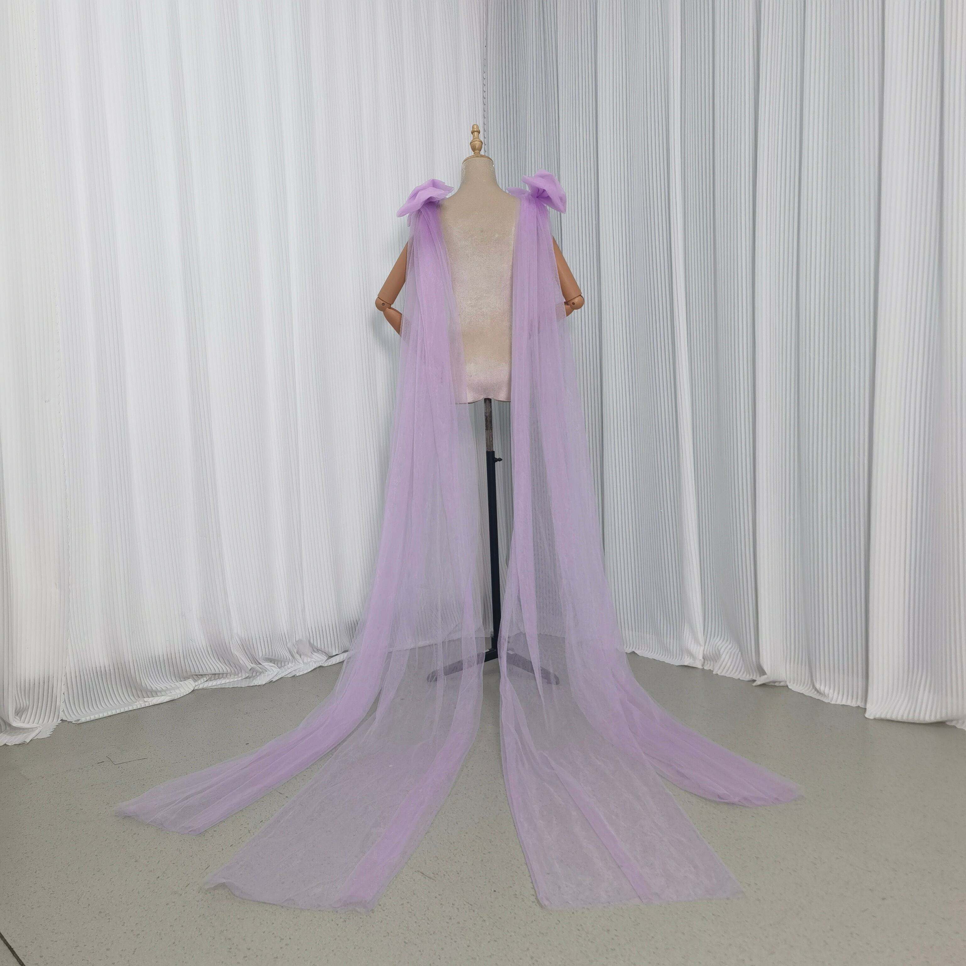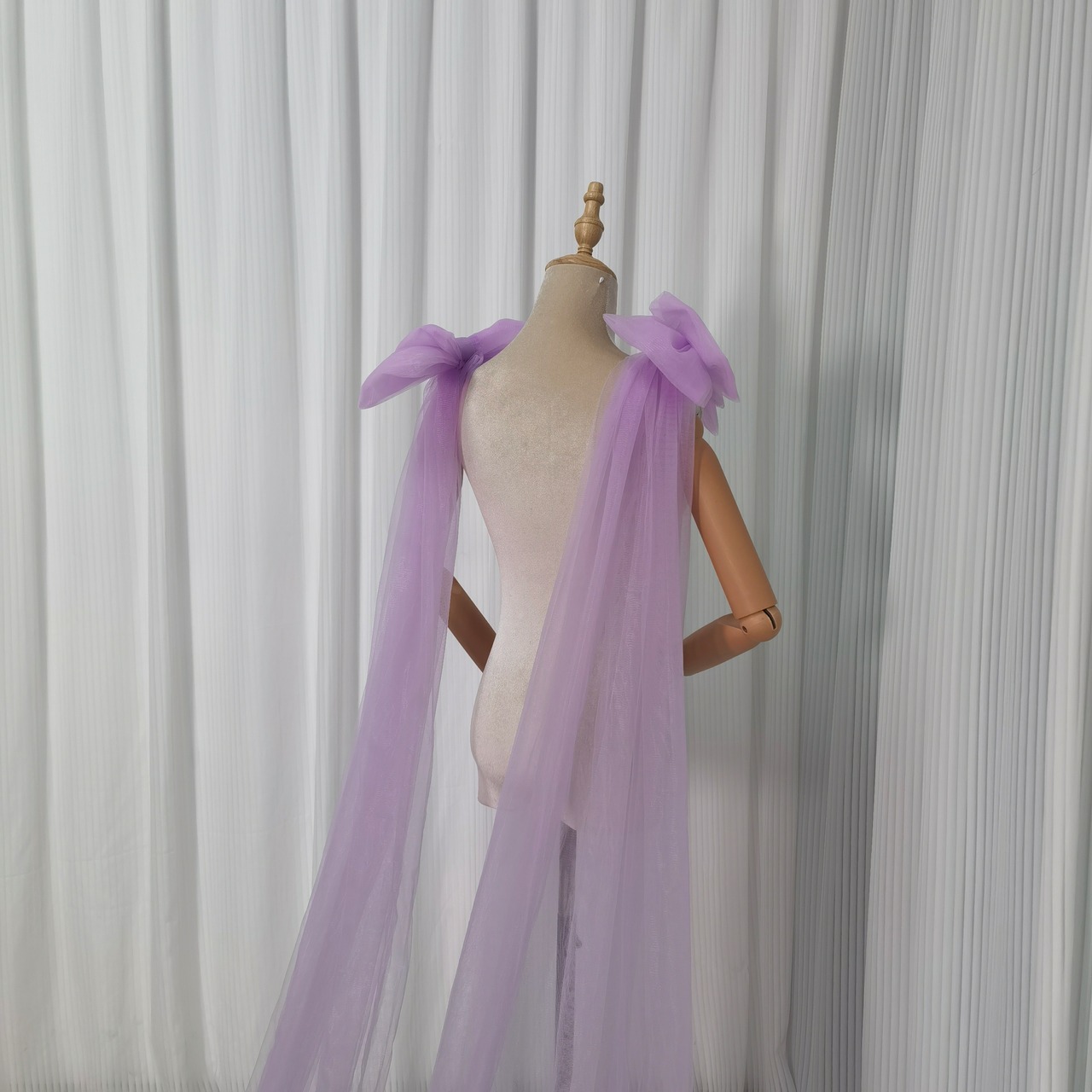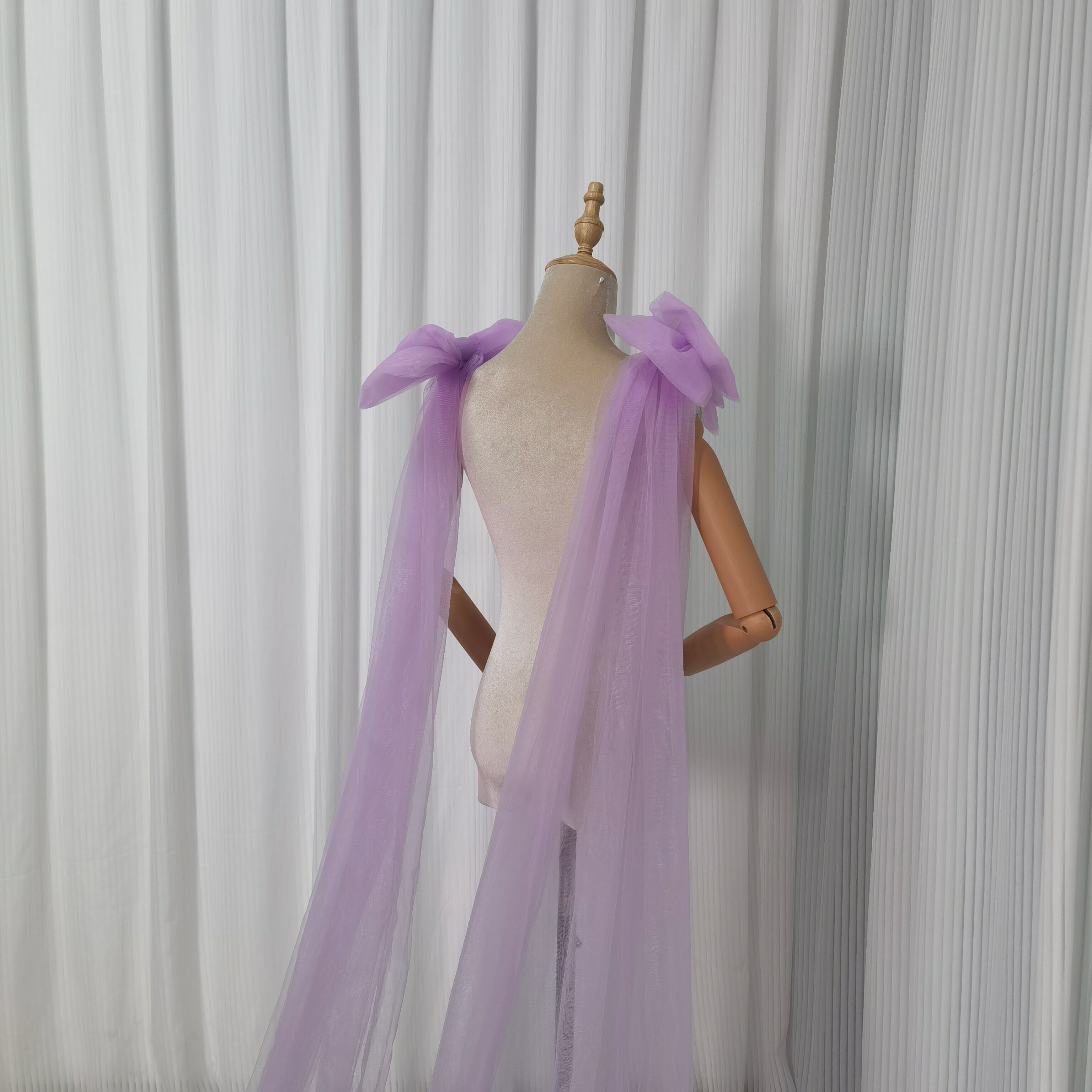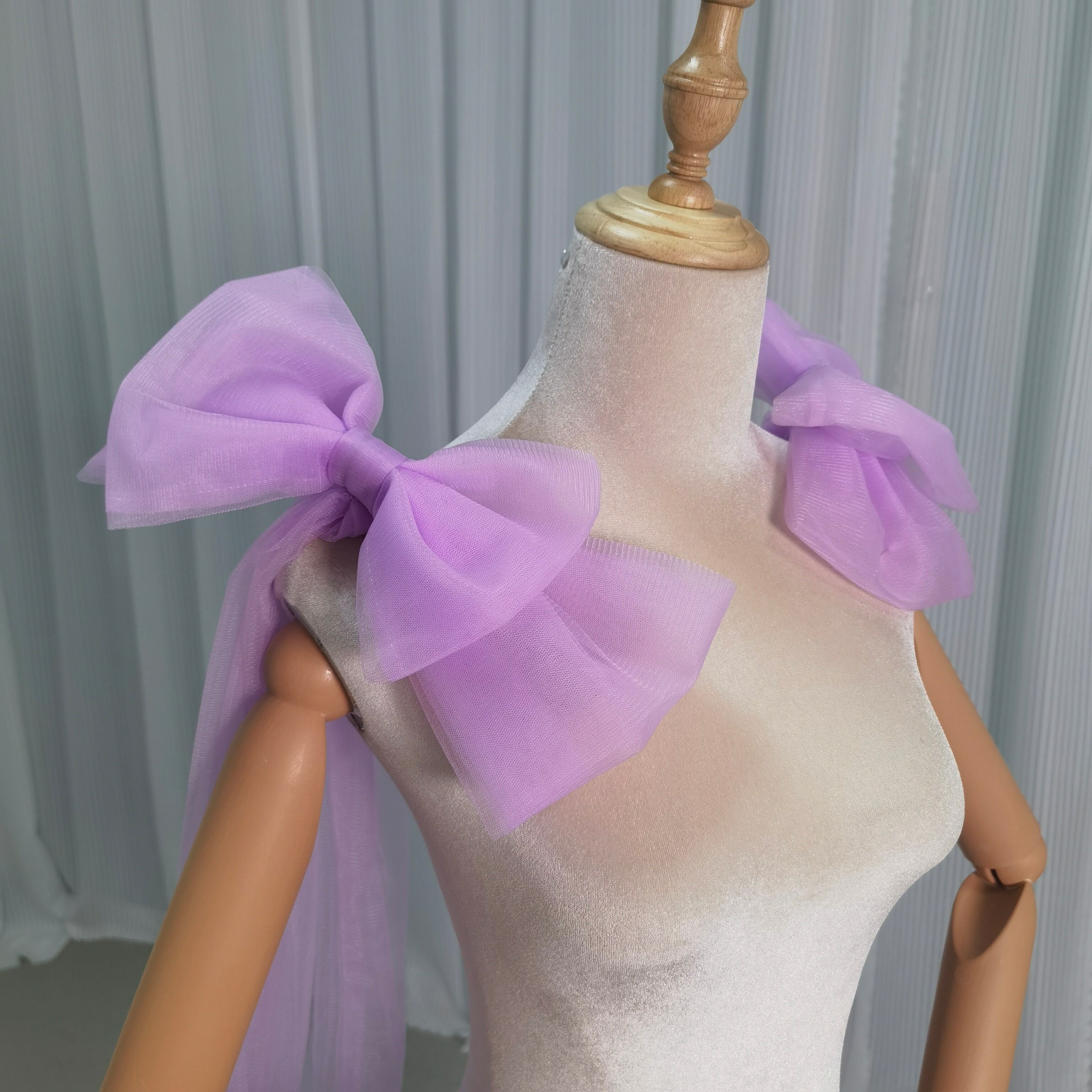 カラードレス パープル 可愛い リボン ソフトチュール ミニトレーン