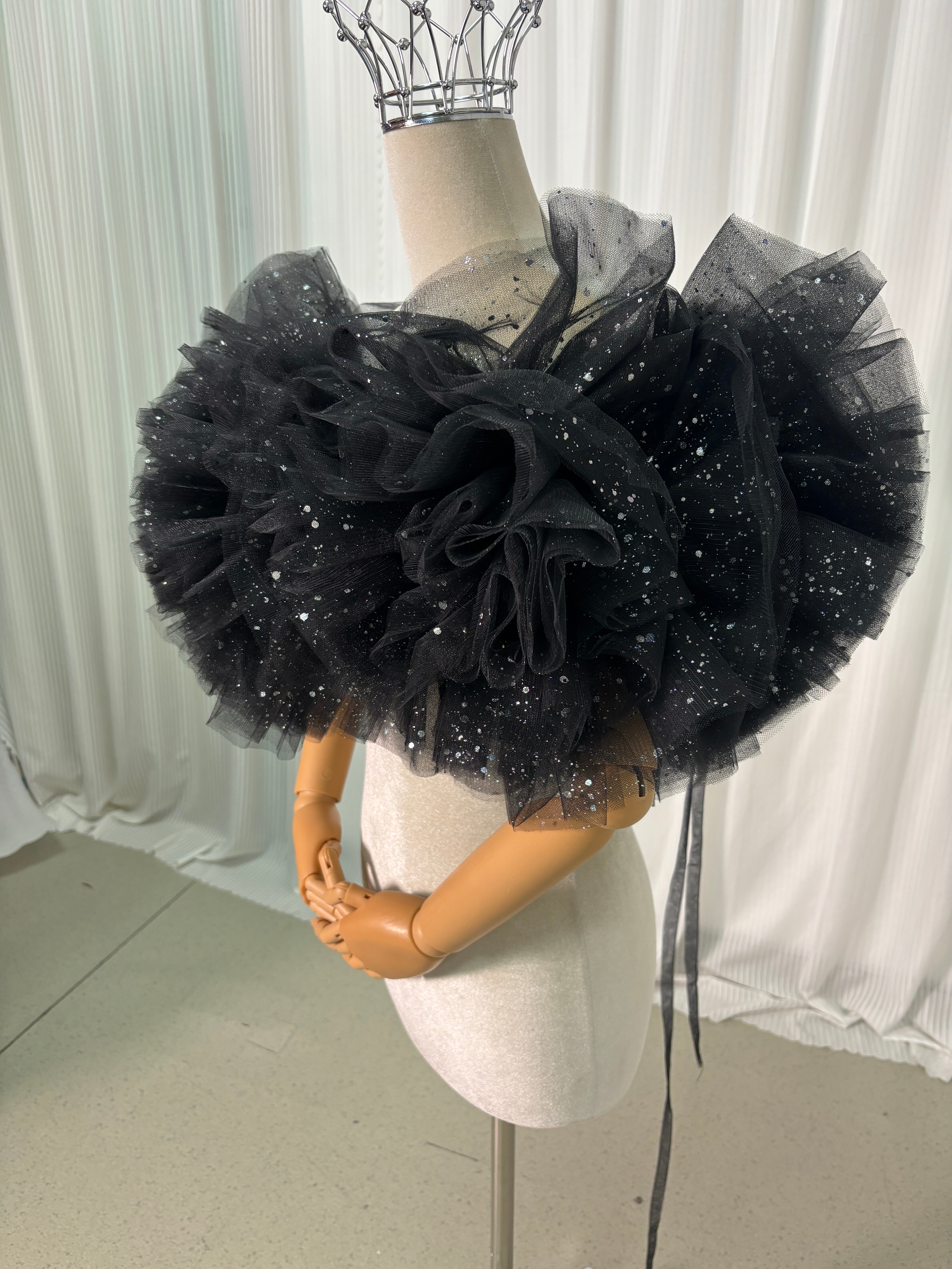 カラードレス ブラック キラキラグリッターチュール 花嫁 オフショルダー+ふっくら柔らかなバックリボン ロングトレーン