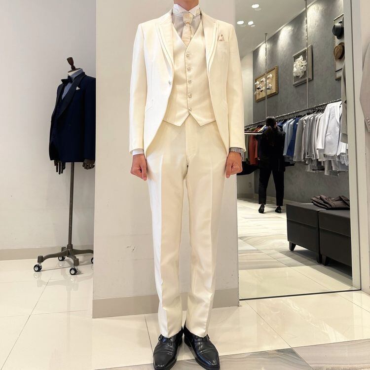 スーツ ジャケット、ベスト、パンツの3点セット ネックタイ 結婚式 前撮り 色直し