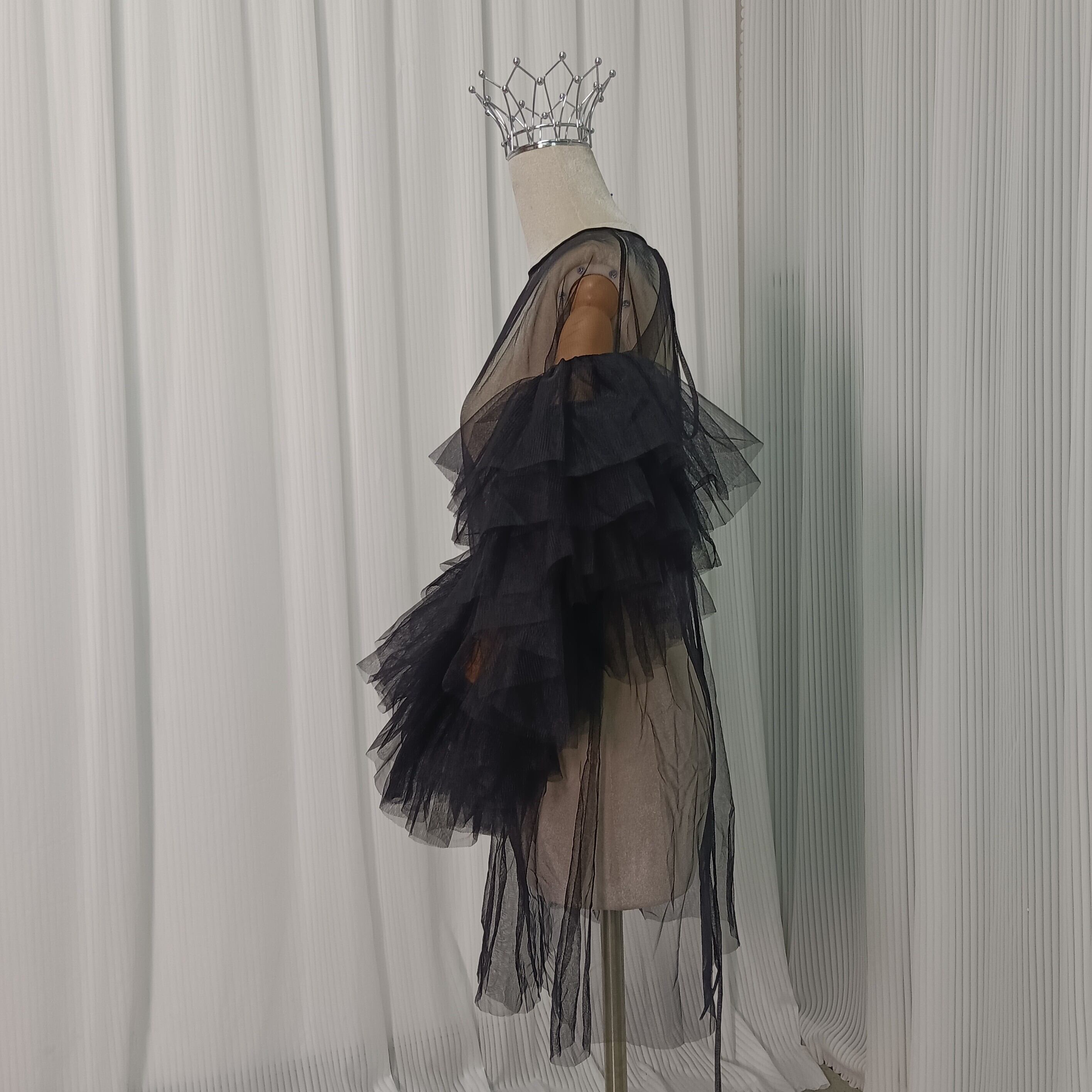 カラードレス ブラック 花嫁 オーバードレス 編み上げ ラウンドネック トップス