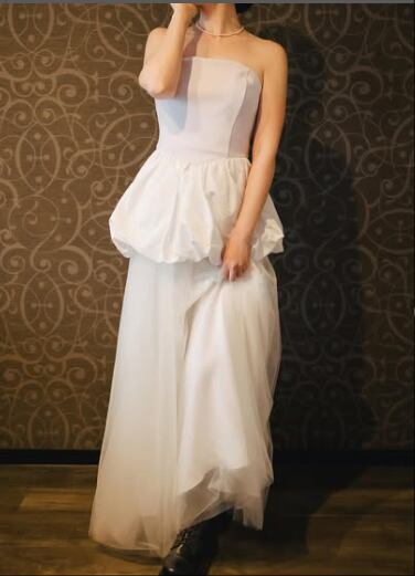 ウエディングドレス ホワイト ベアトップ ソフトチュール ツーピース 韓国風ドレス 前撮り