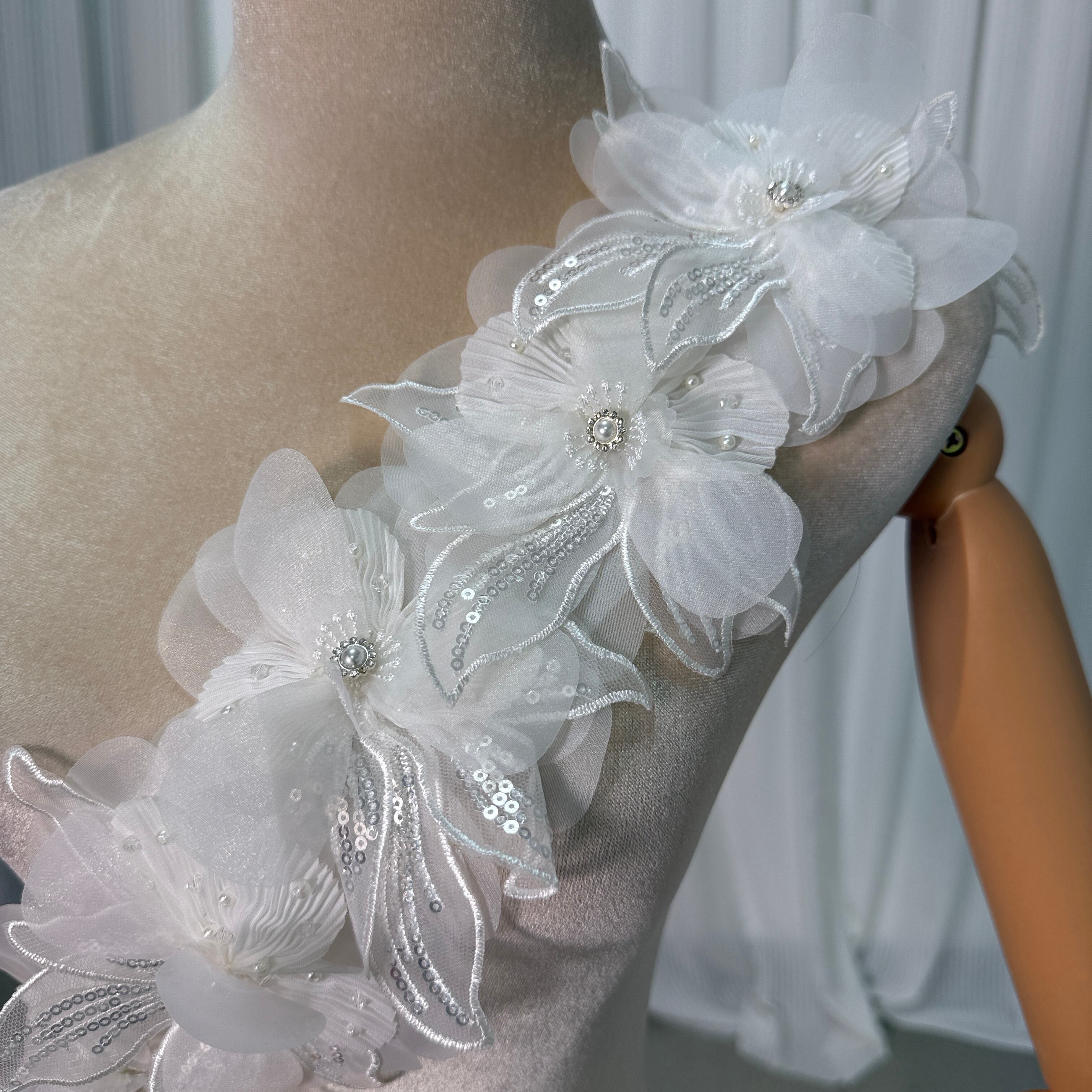送料無料! ウエディングドレス ショルダー型 ビーズ ホワイト