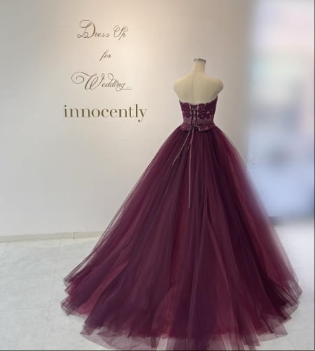 カラードレス ボルドー色 ベアトップ ボレロ ソフトチュール サッシュベルト ビスチェタイプ 花嫁 前撮り