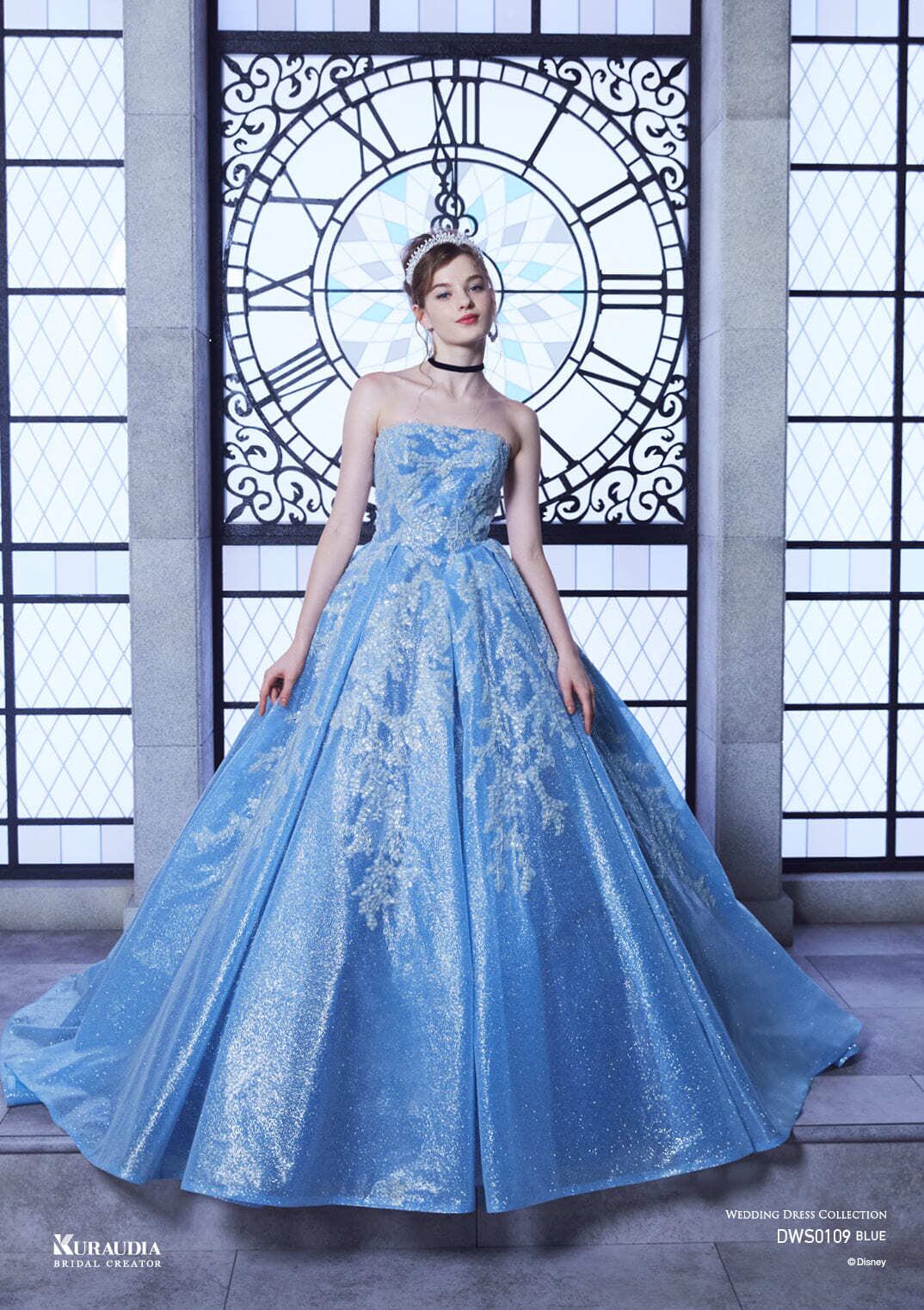 カラードレス 爽やかで優しいブルー 取り外し袖 上品レース 光沢サテン ピアノ演奏会/音楽会 華やかなトレーン プリンセスライン