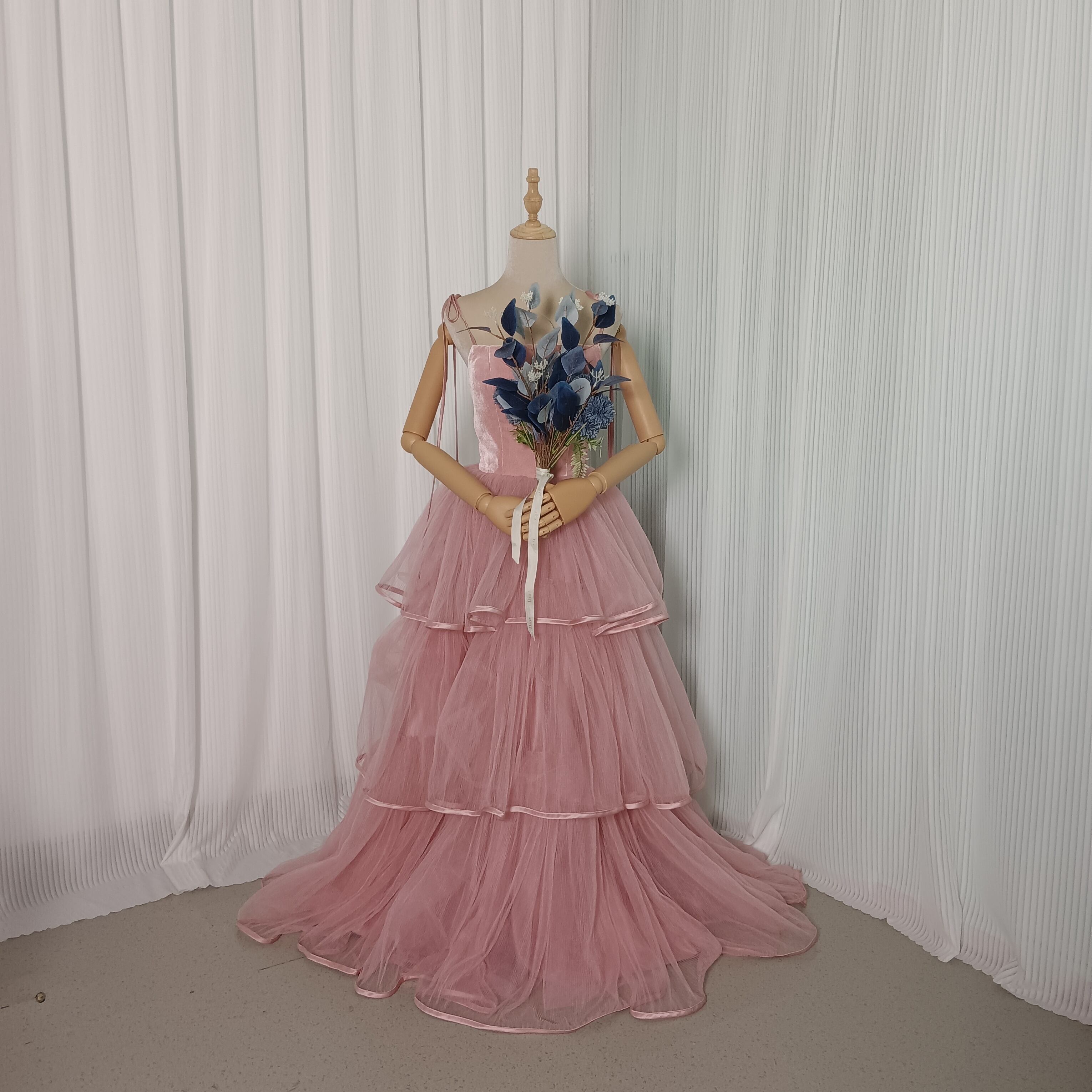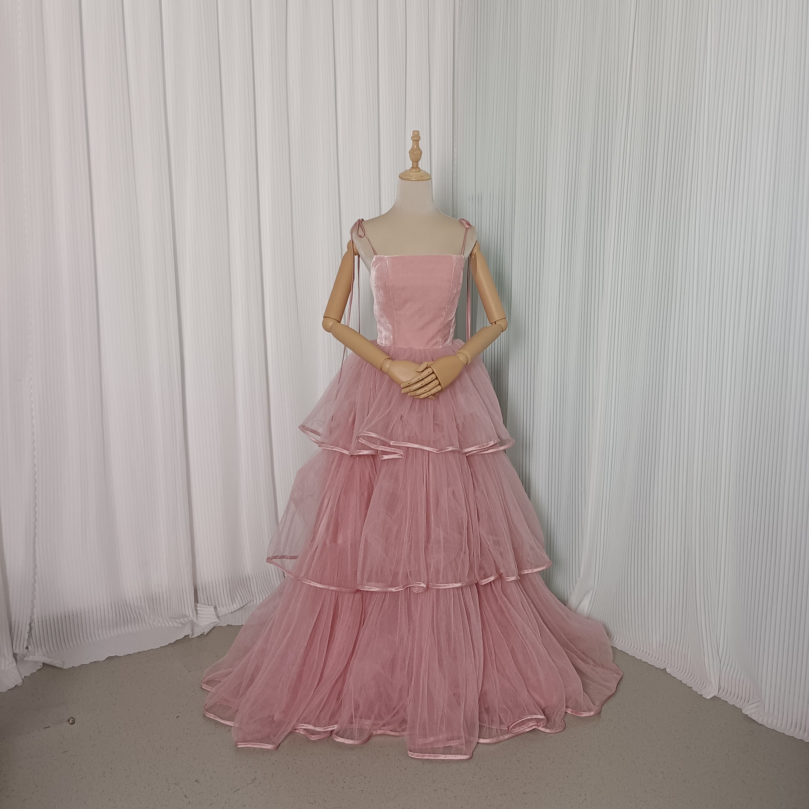 カラードレス ピンク キャミソール ファスナー プリンセスライン 花嫁 前撮り ティアードのドレス