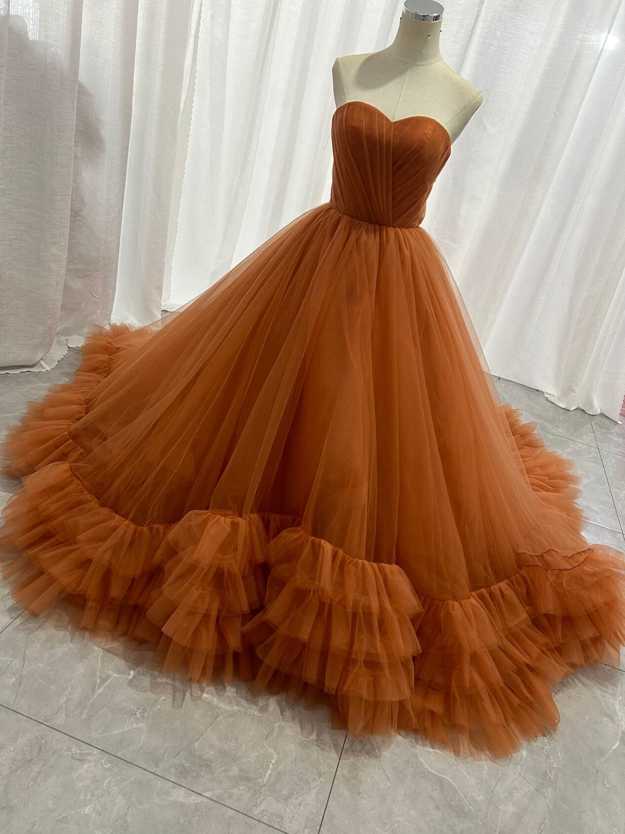 カラードレス テラコッタ色 取り外し袖 華やかなトレーン ソフトチュール 抜群のおしゃれ見え 花嫁 前撮り