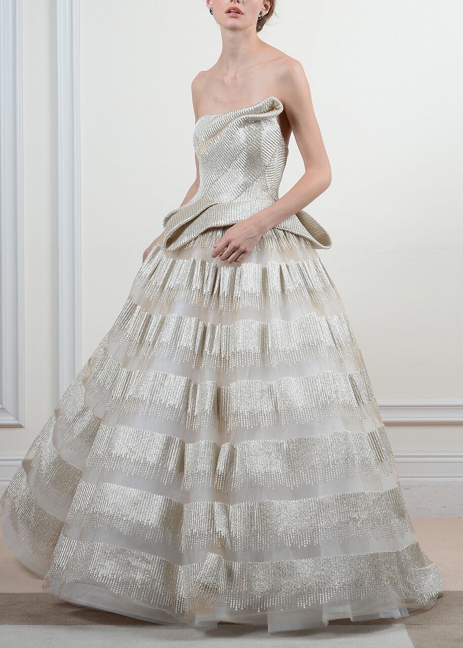 カラードレス シルバーグレー チューブトップ キラキラチュール デザイン感 ロング 抜群のおしゃれ見え ピアノ演奏会/音楽会/発表会など