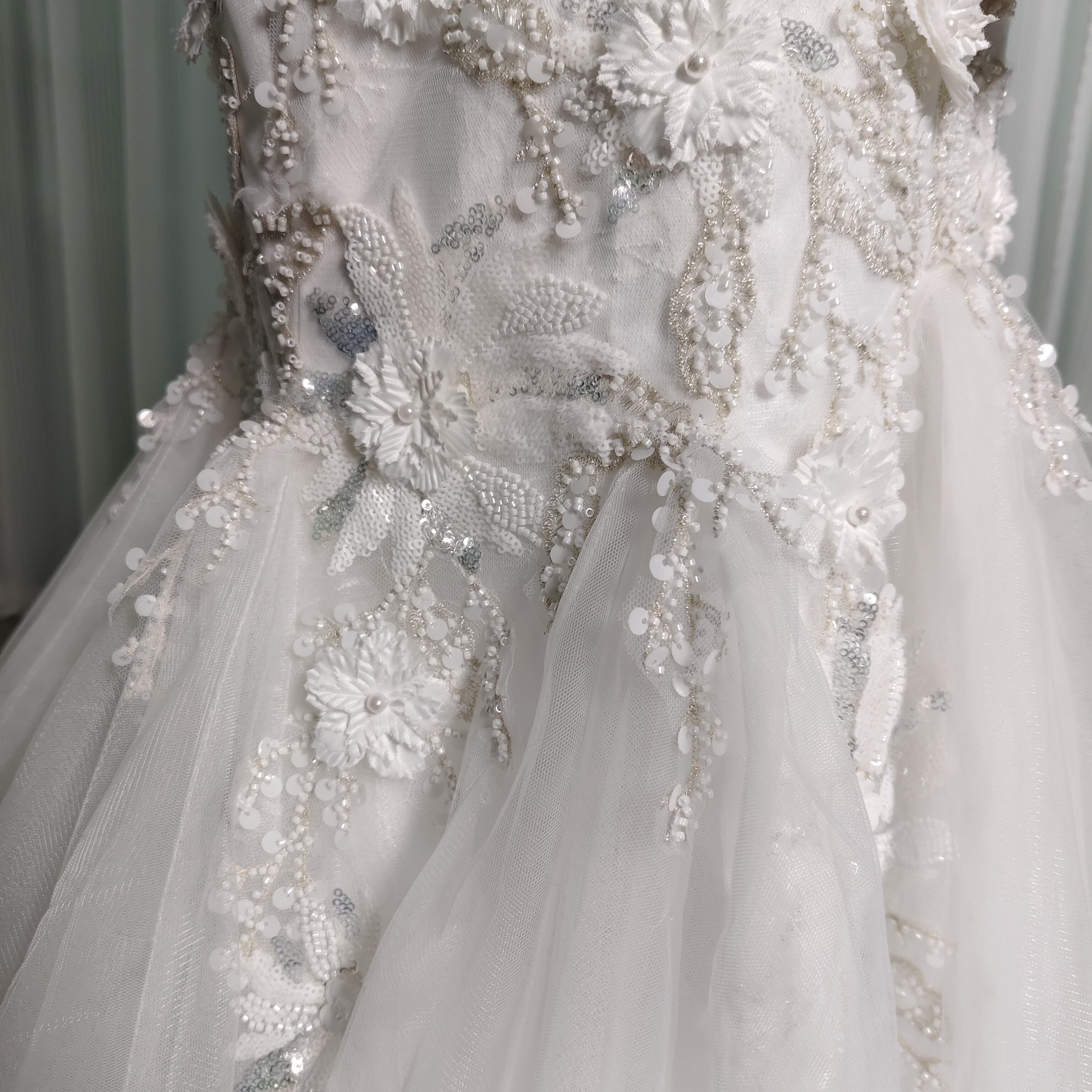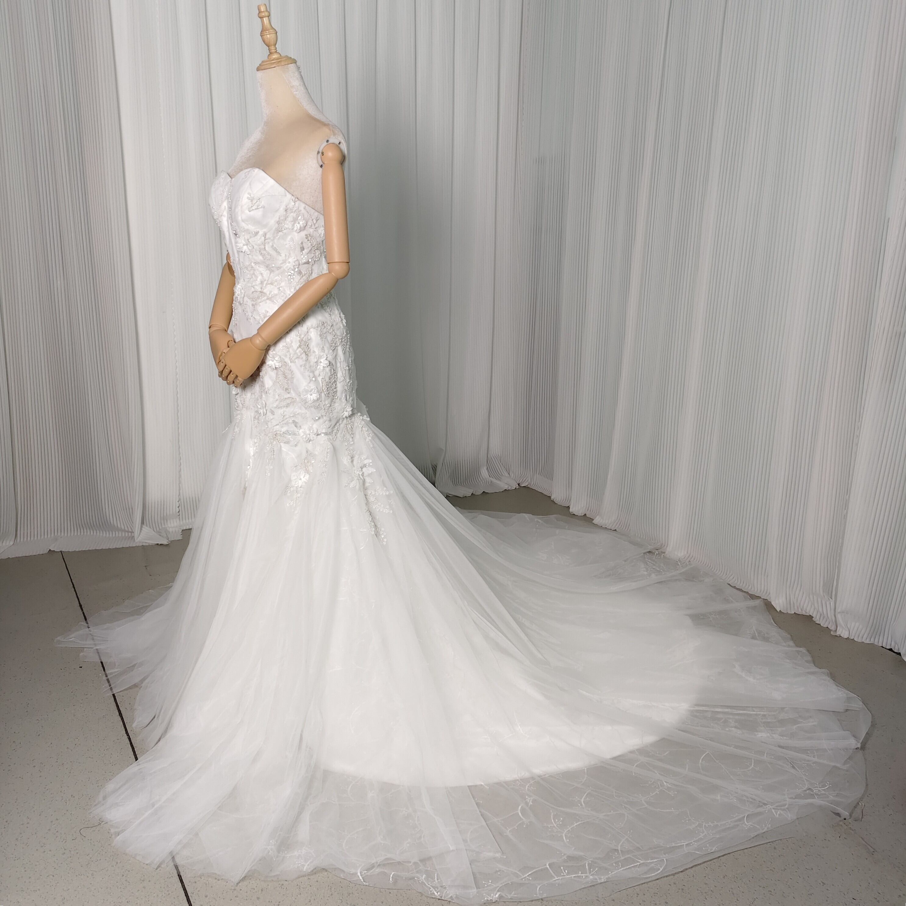 ウエディングドレス 華奢 ホワイト 3D立体レース刺繍 マーメイドライン 華やかなトレーン 披露宴/結婚式