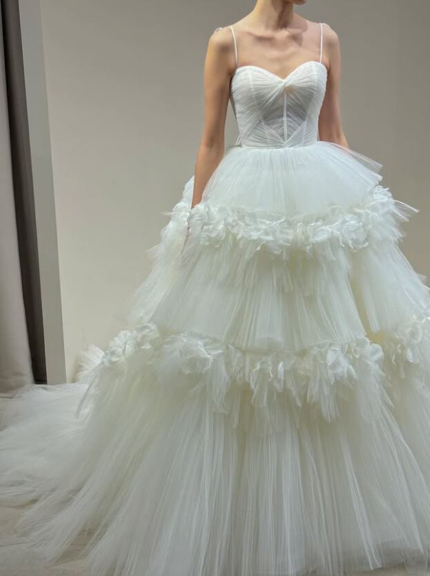 ウエディングドレス ホワイト キャミソール 編み上げ ソフトチュール 華やかなトレーン 披露宴/結婚式 ふわふわドレス