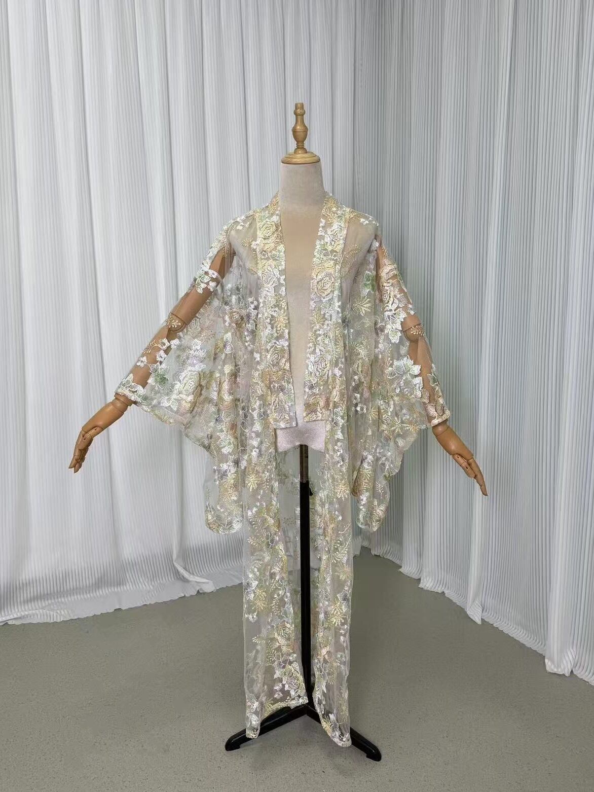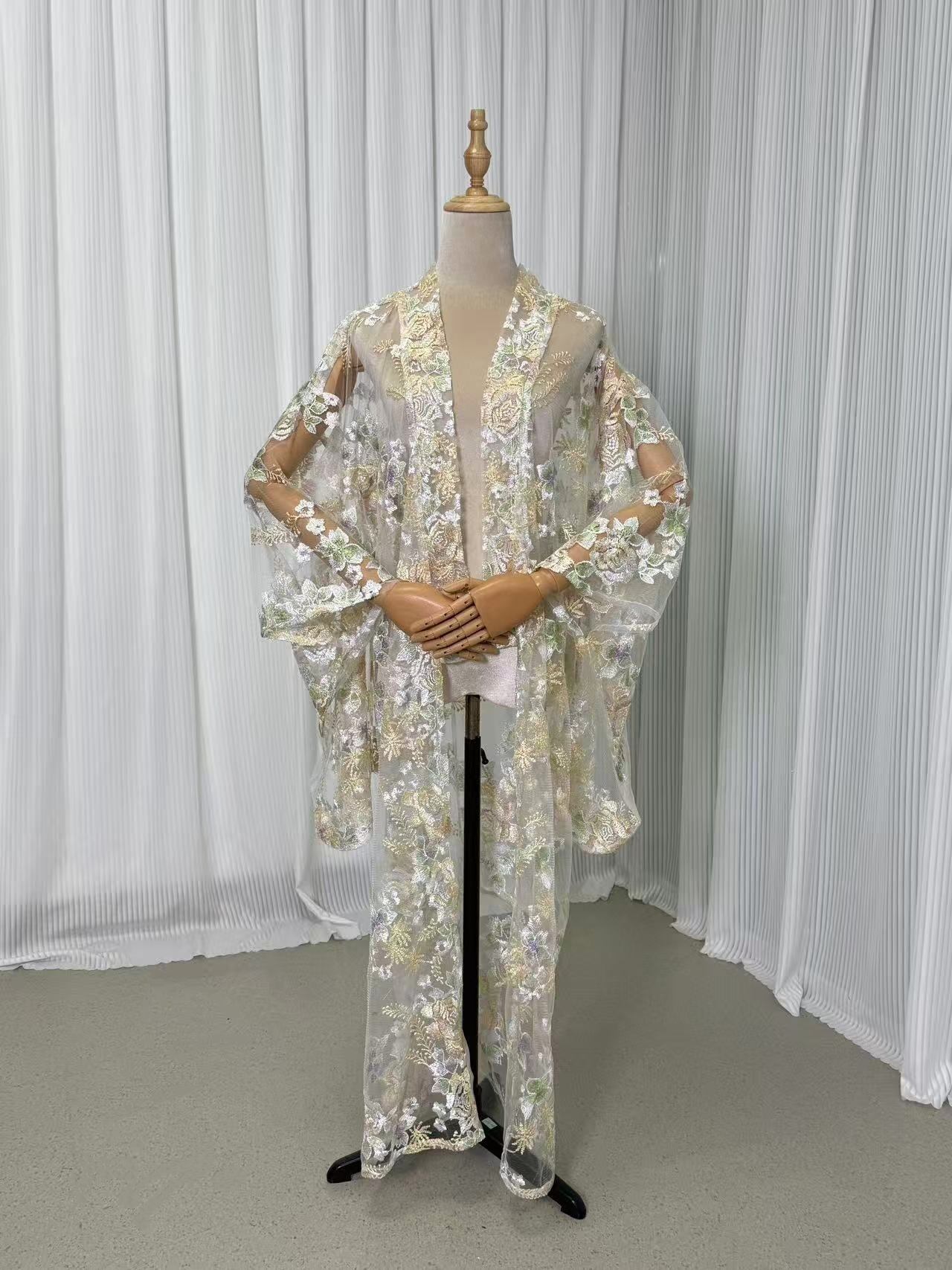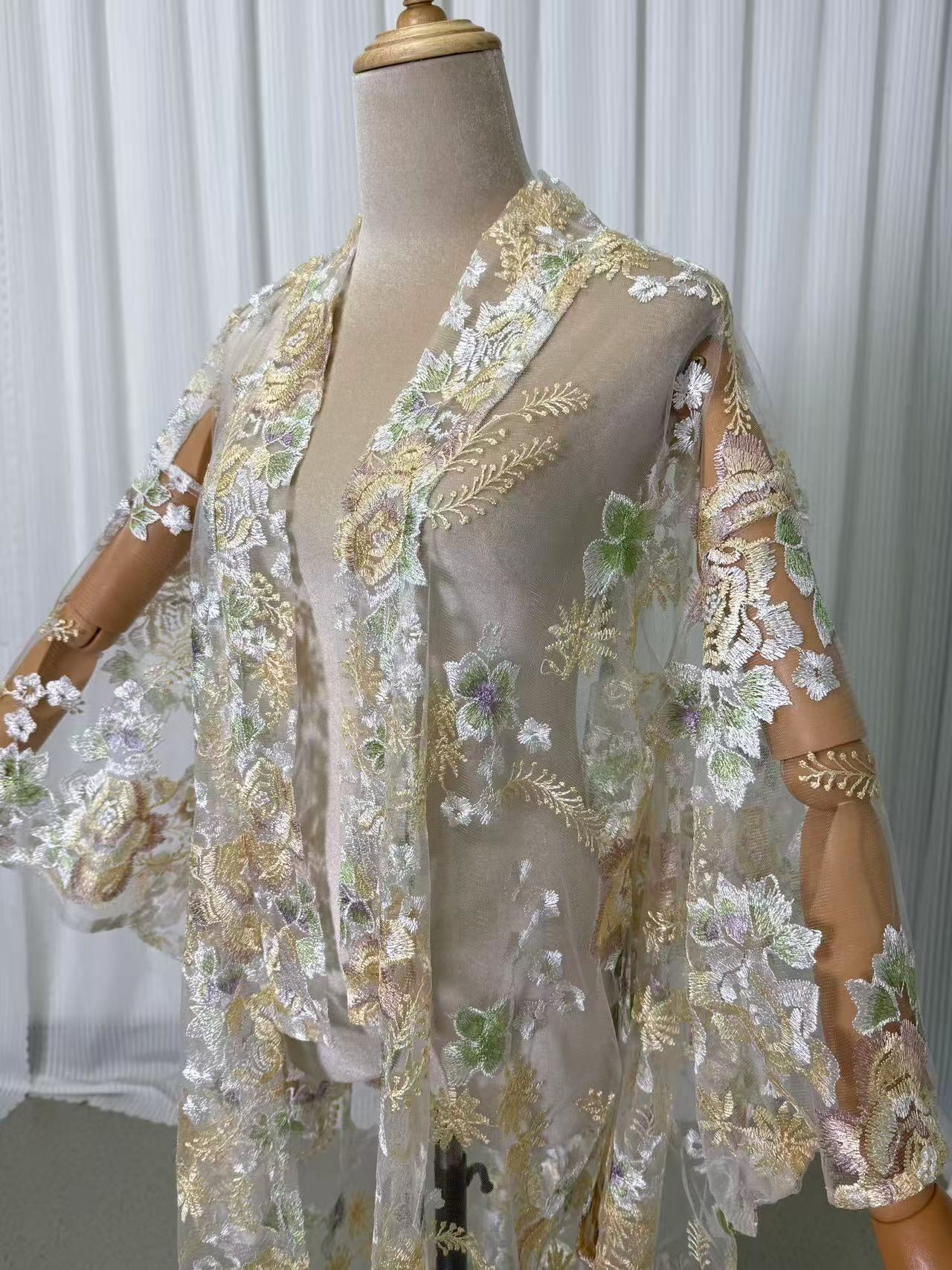 人気上昇! 花柄のモチーフ刺繍が美しく ロングスリーブ 揺らめく裾 コート 绮丽な 花嫁