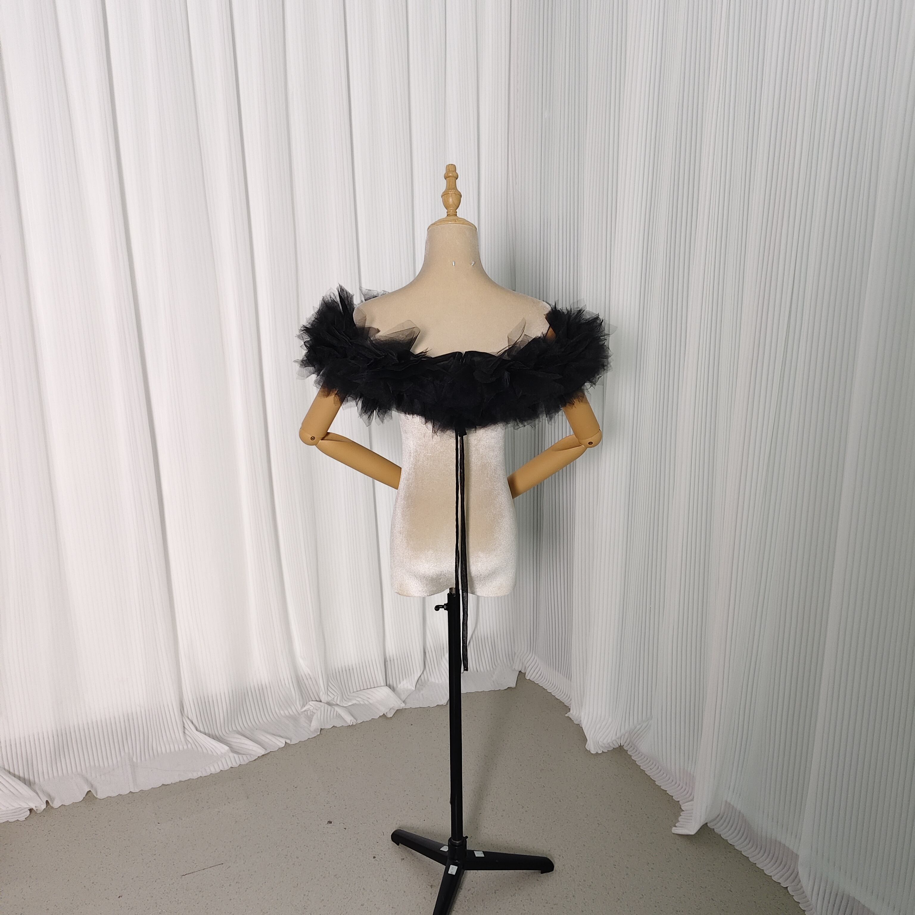 カラードレス ブラック 取り外しオフショルダー 編み上げ ソフトチュール 色直し 花嫁 前撮り