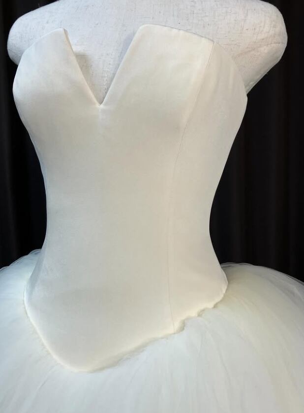ウエディングドレス ホワイト ベアトップ Vネック ファスナー ソフトチュール 華やかなトレーン 花嫁