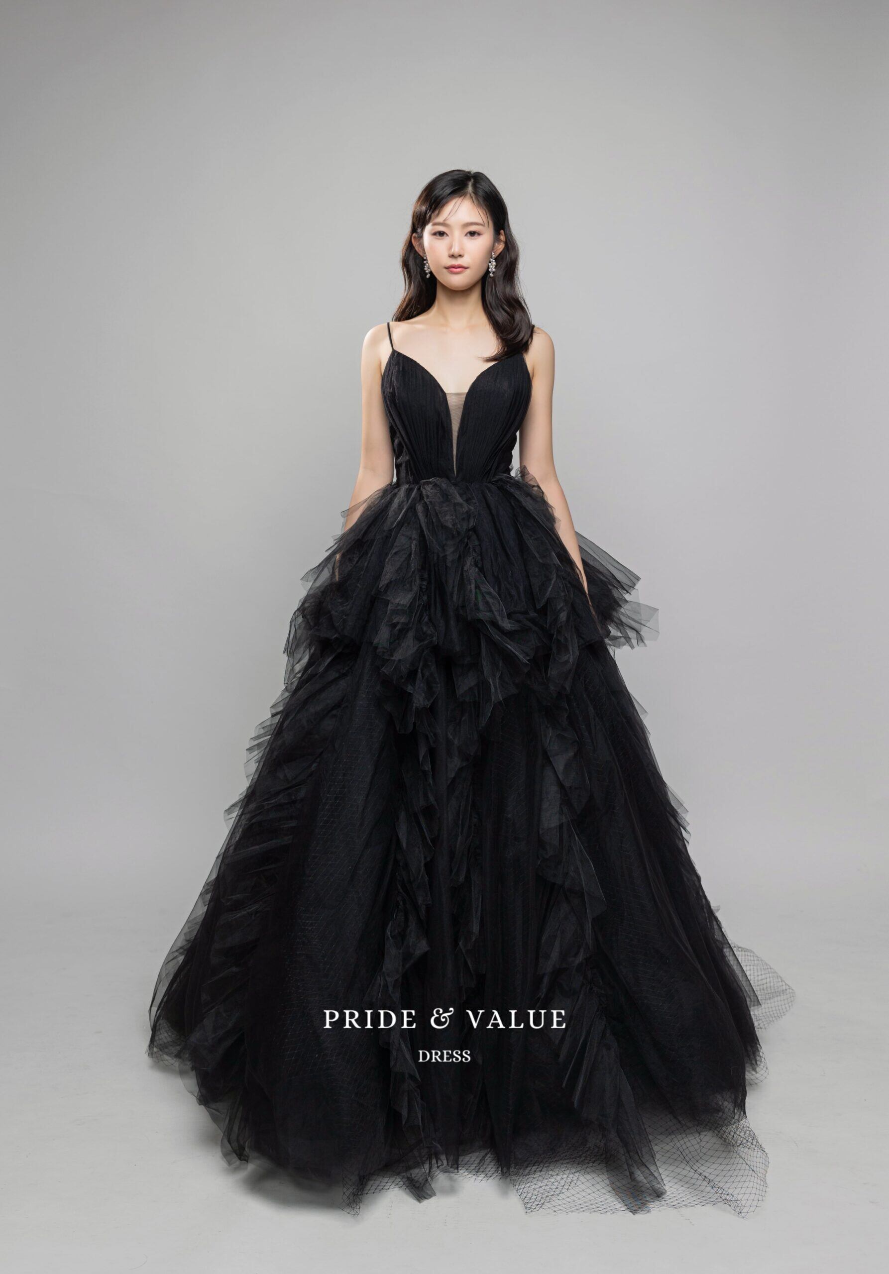 カラードレス ブラック キャミソール Vネック ソフトチュール 短トレーン 音楽会/発表会など