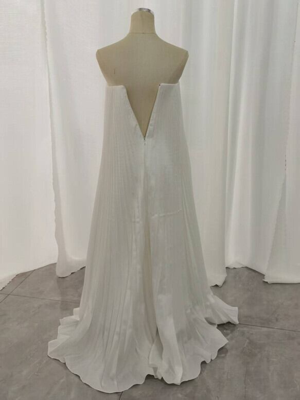 実例写真!ウエディングドレス ホワイト ハンドドレープ ベアトップ ファスナー スレンダーライン 前撮り プリーツドレス