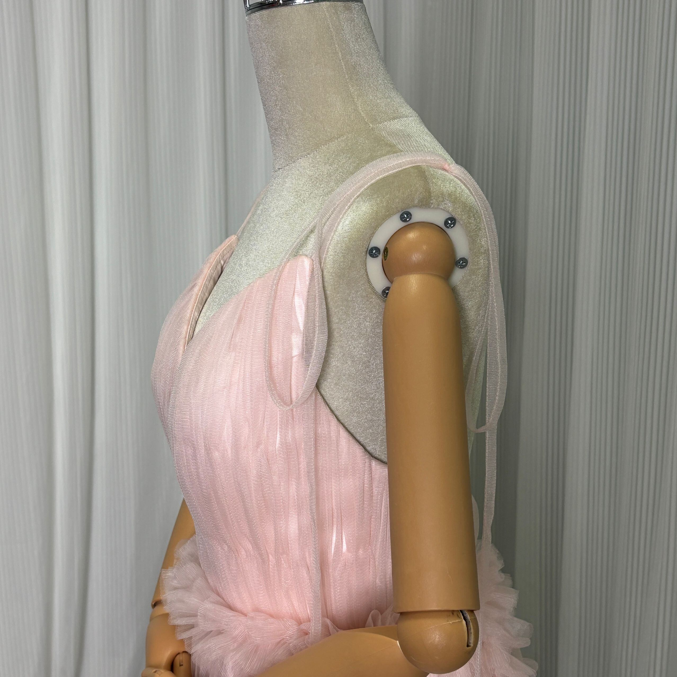 カラードレス ピンク キャミソール ソフトチュール 可愛い 編み上げ 華やかなトレーン Vネックドレス 花嫁 前撮り