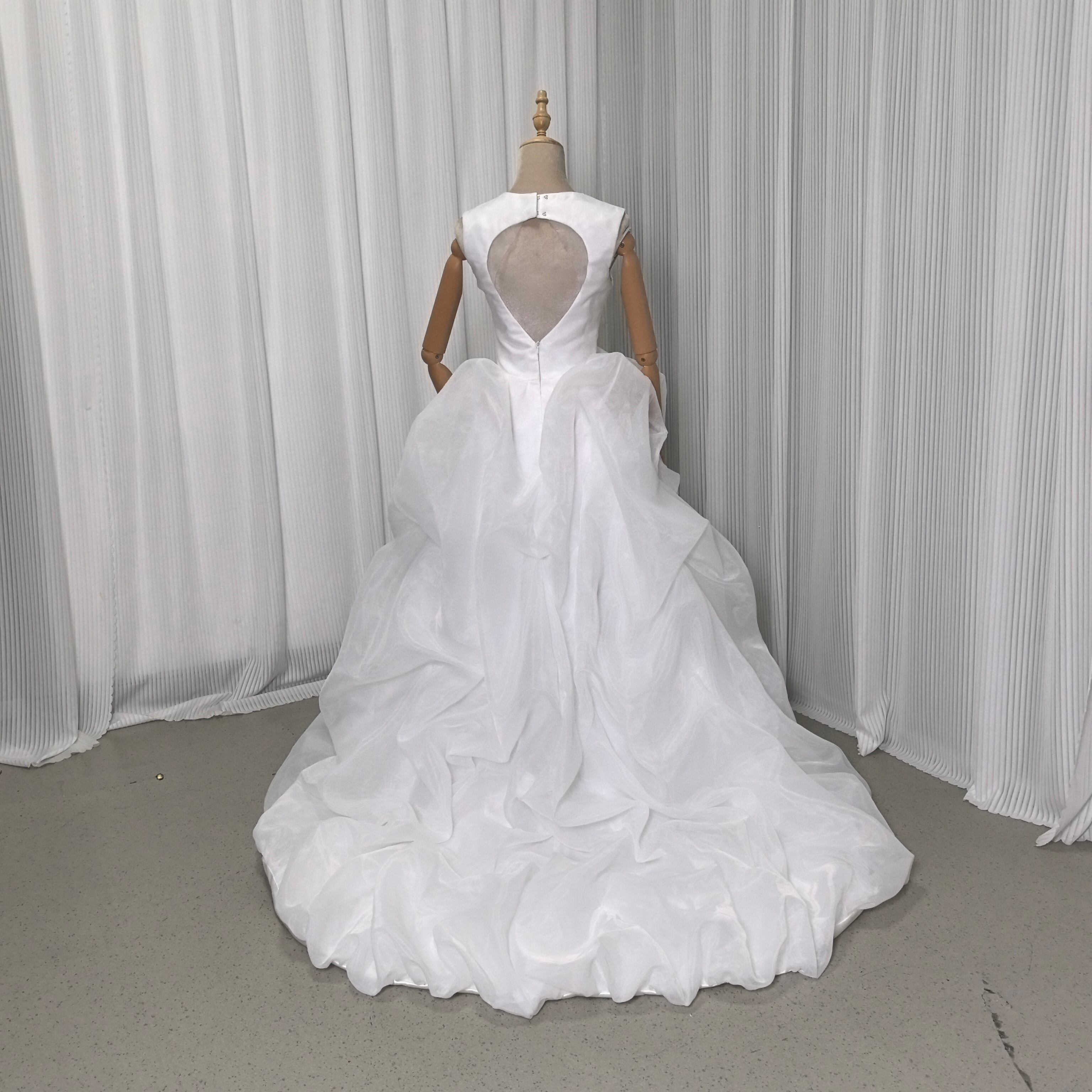 ウエディングドレス ラウンドネック オフホワイト バックレス フィッシュテール 華やかなトレーン 結婚式