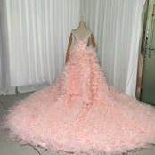 カラードレス 薄ピンク ベアトップ 可愛い プリンセスライン 華やかなトレーン もこもこドレス 花嫁 前撮り