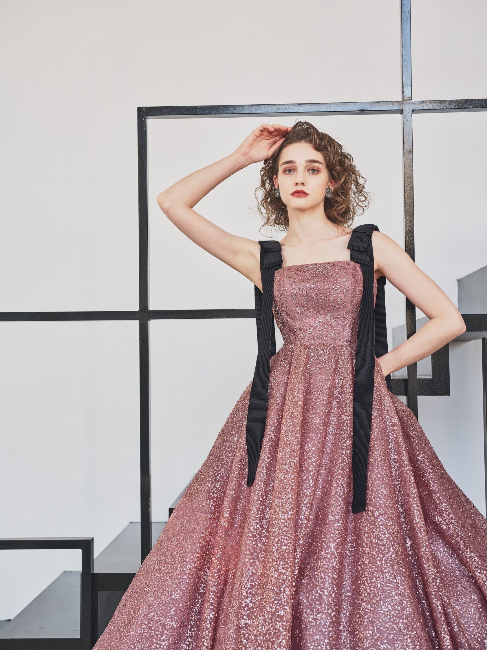 カラードレス ピンク オートクチュール ファスナー Aライン トレーン 花嫁 前撮り ビスチェドレス
