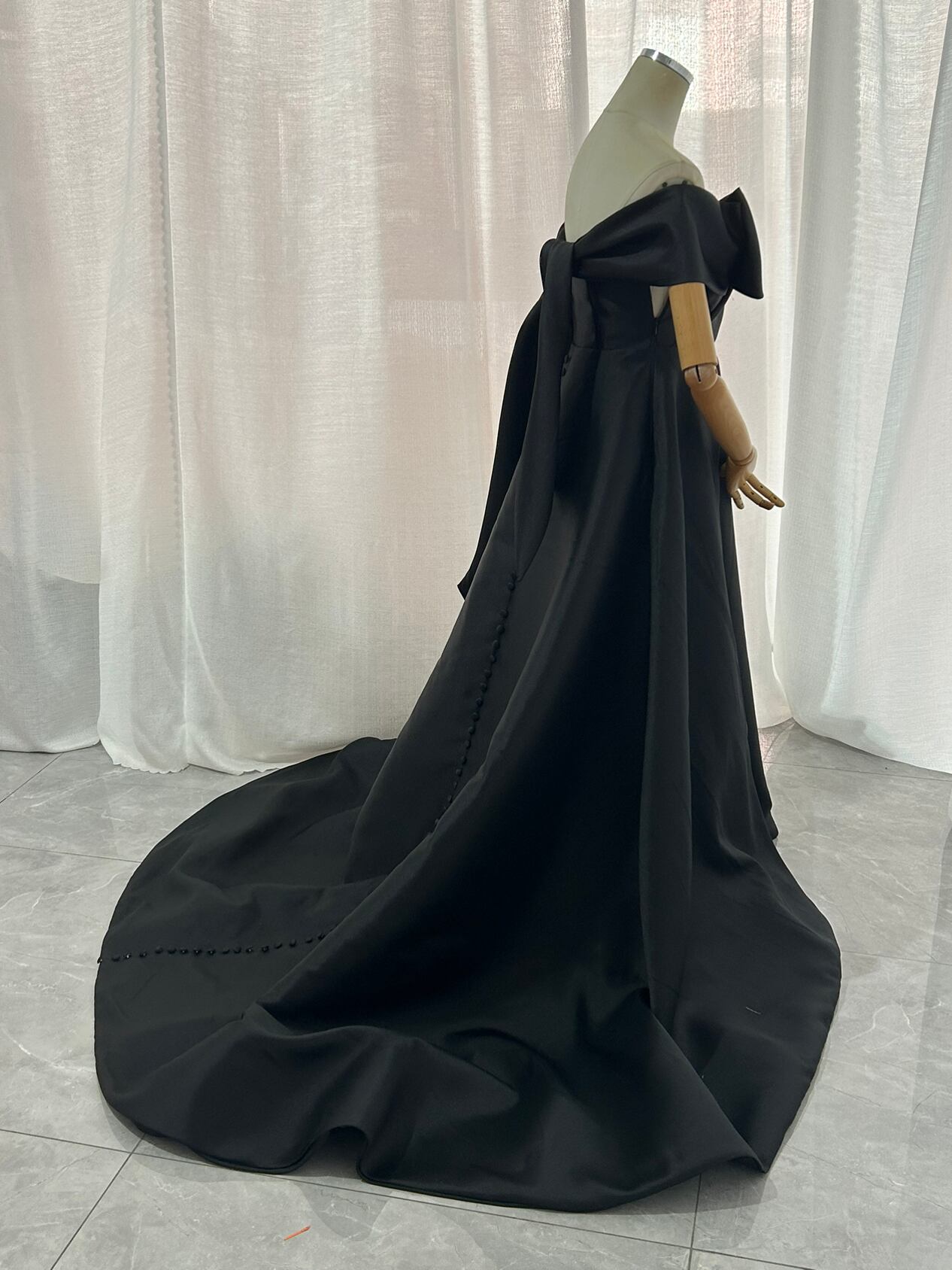 カラードレス ブラック オフショルダー ミカドサテン 華やかなトレーン 細見えシルエット 花嫁 前撮り