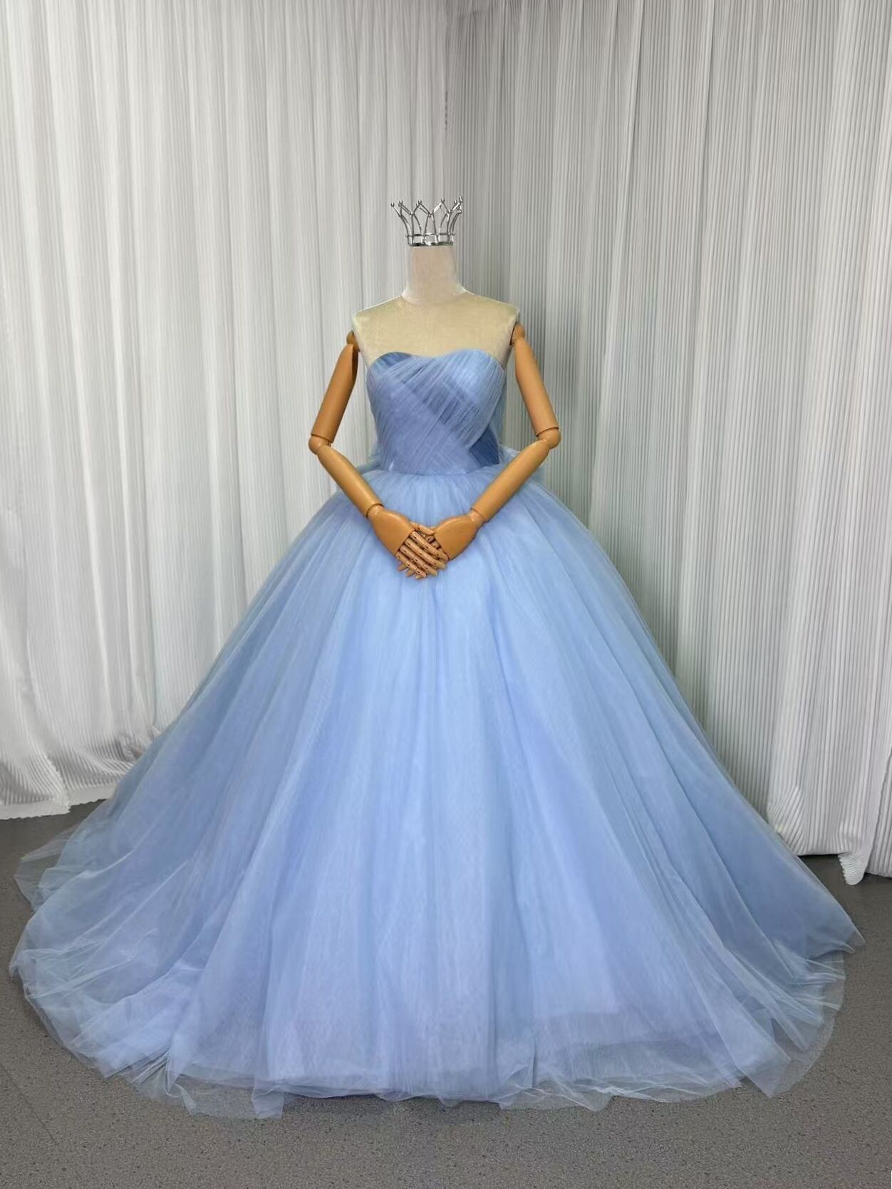 カラードレス 爽やかで優しいブルー ふっくら柔らかなバックリボン 編み上げ ソフトチュール 華やかなトレーン 結婚式