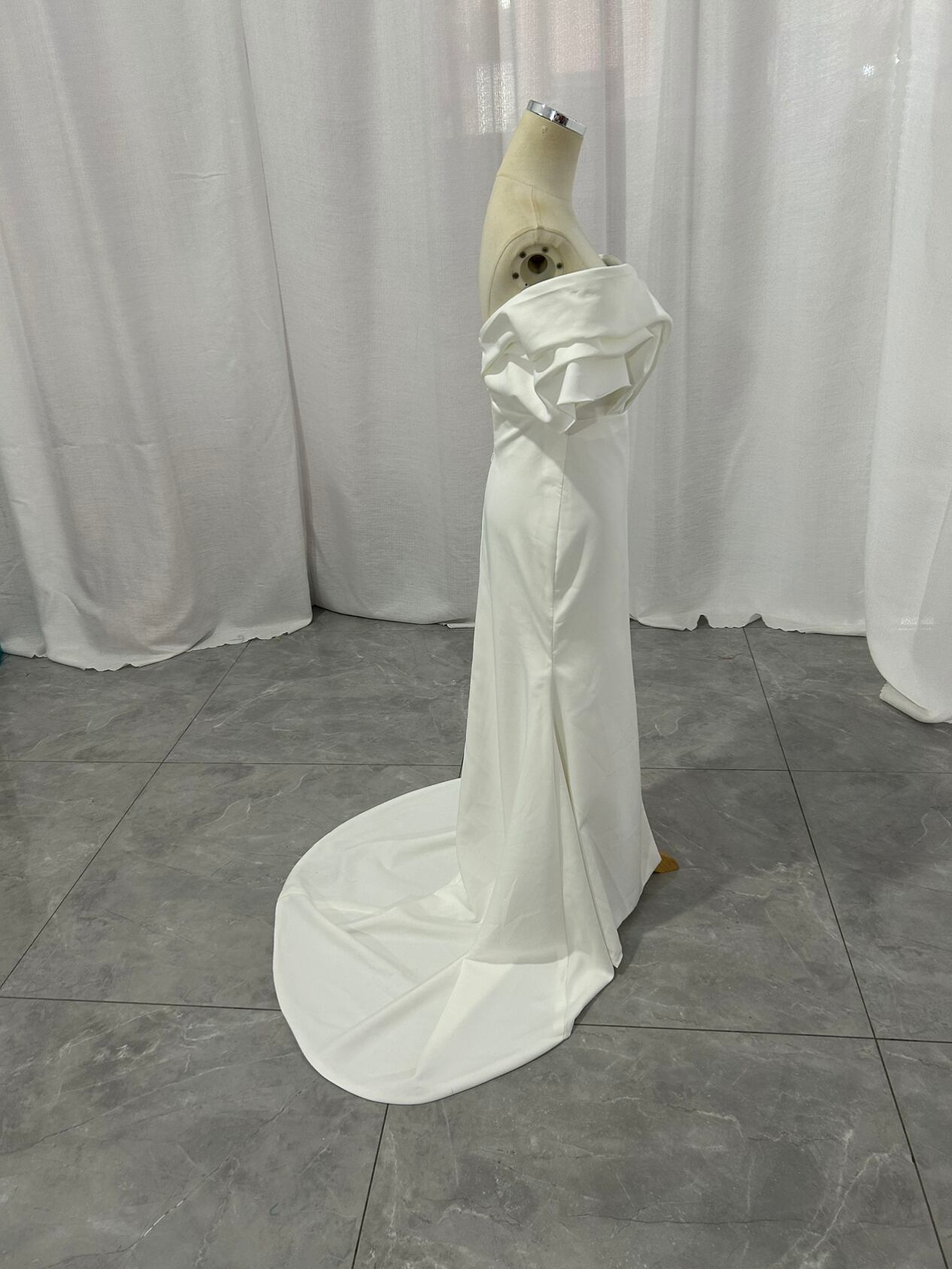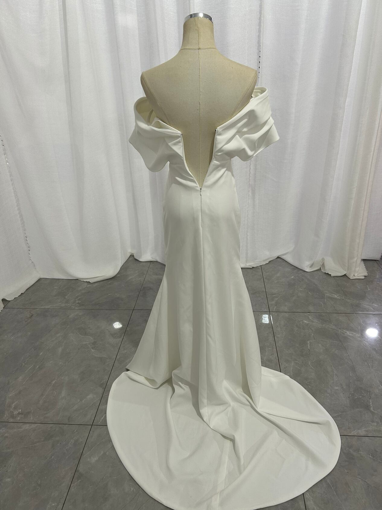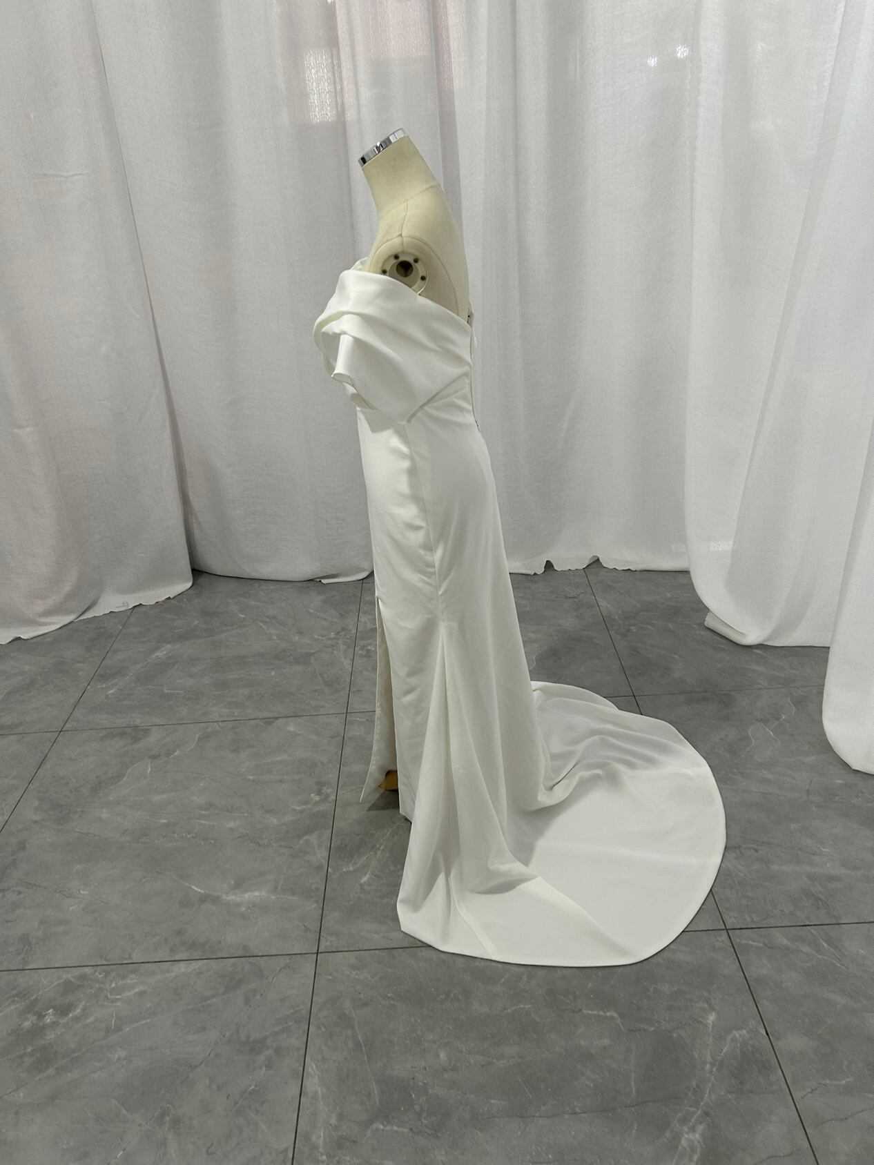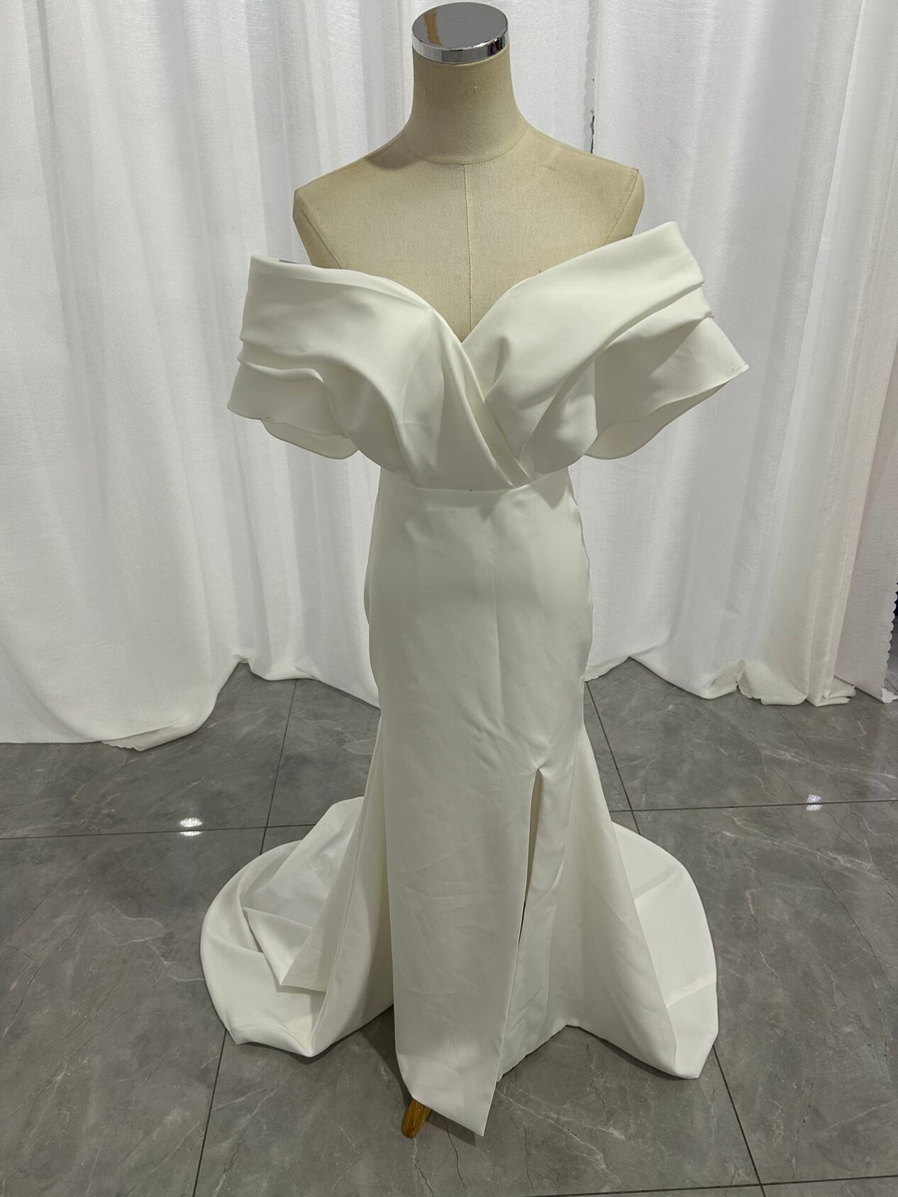 ウエディングドレス オフホワイト クレープ生地 ファスナー ソフトマーメイドライン 細見えシルエット 花嫁 前撮り