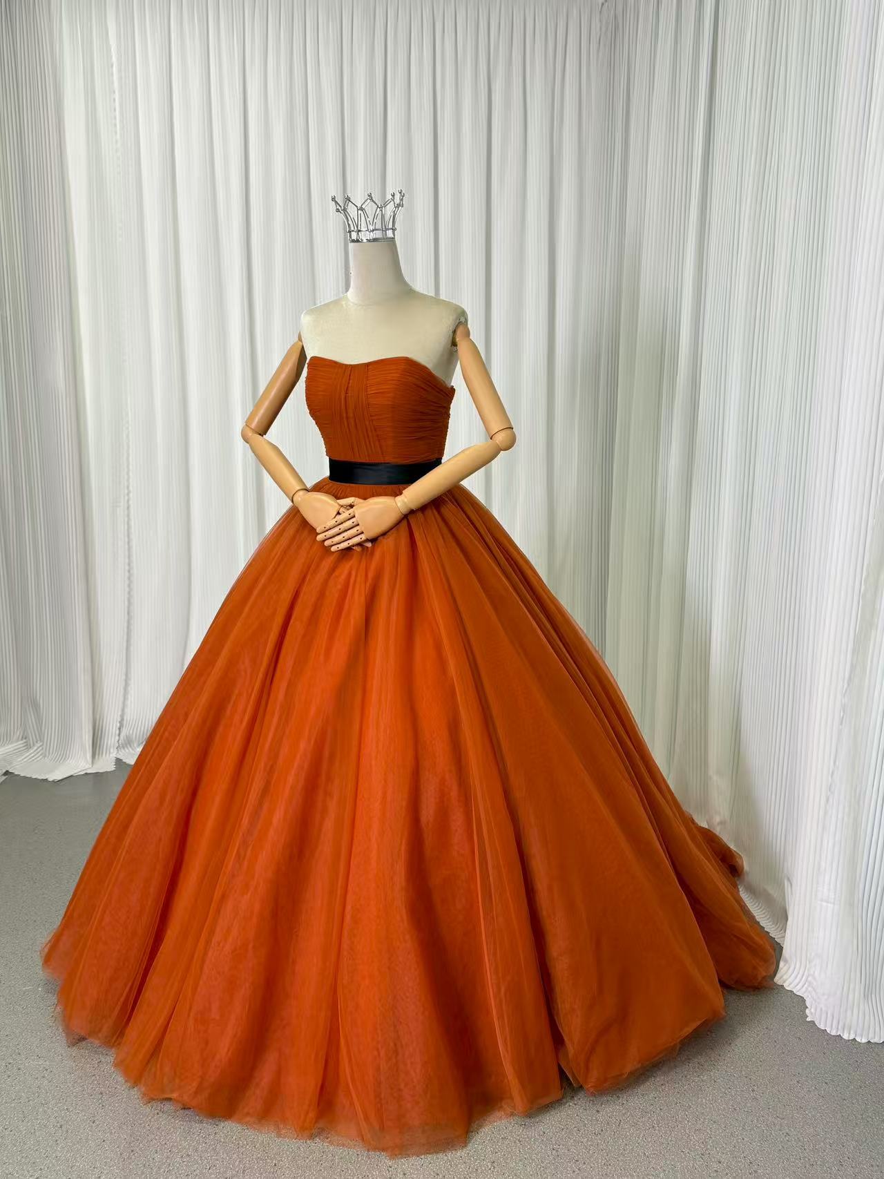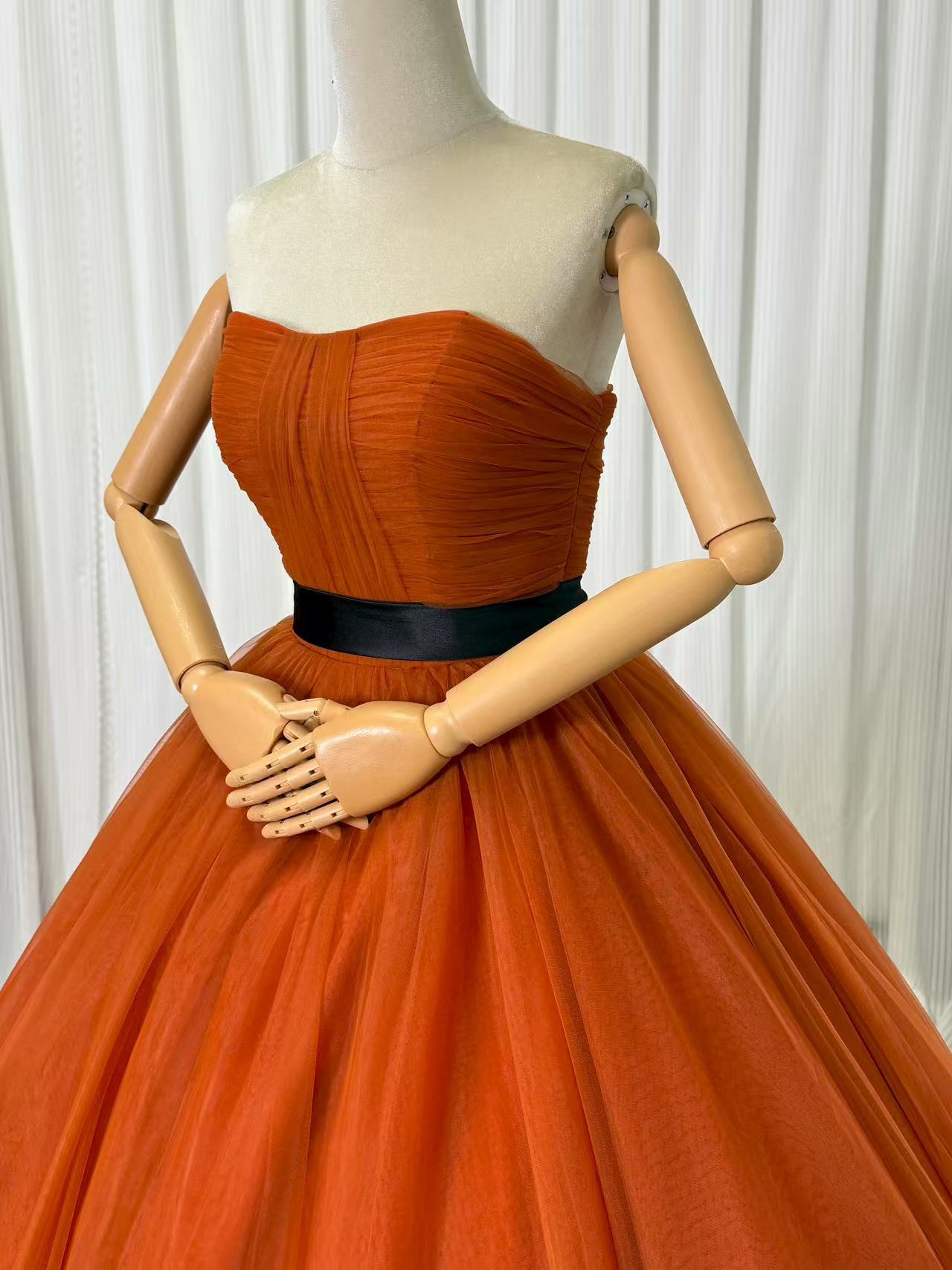 カラードレス テラコッタ色 ビスチェドレス 柔らかく重ねたチュールスカート サッシュベルト 花嫁