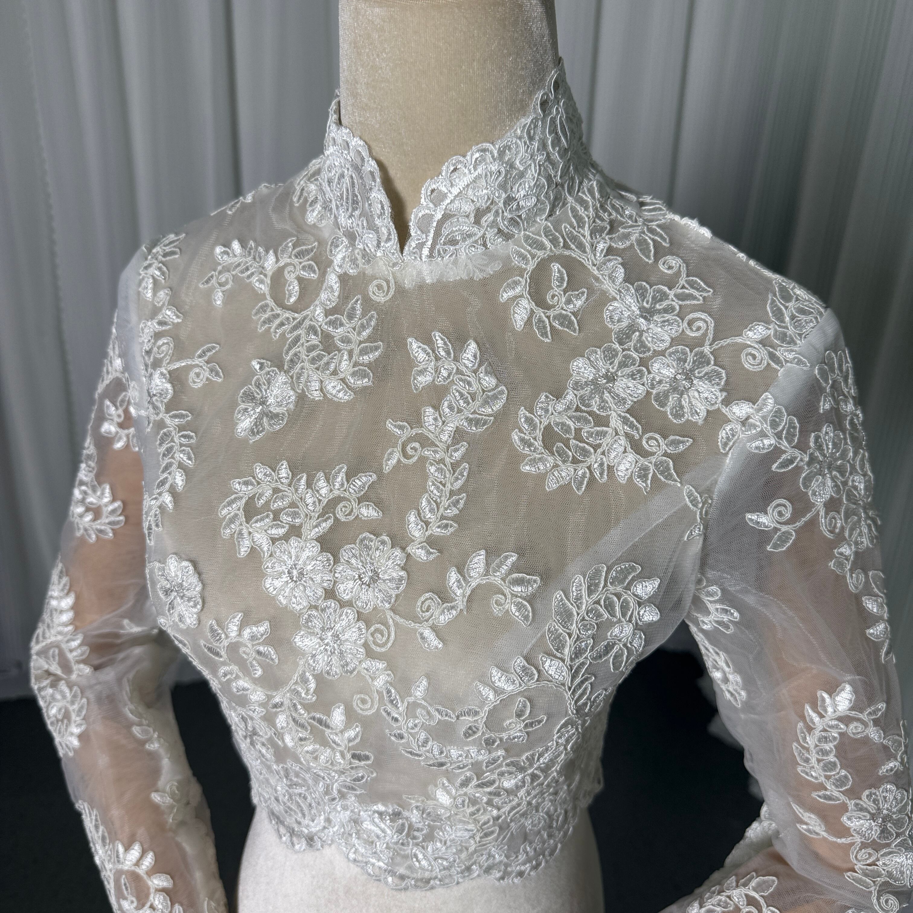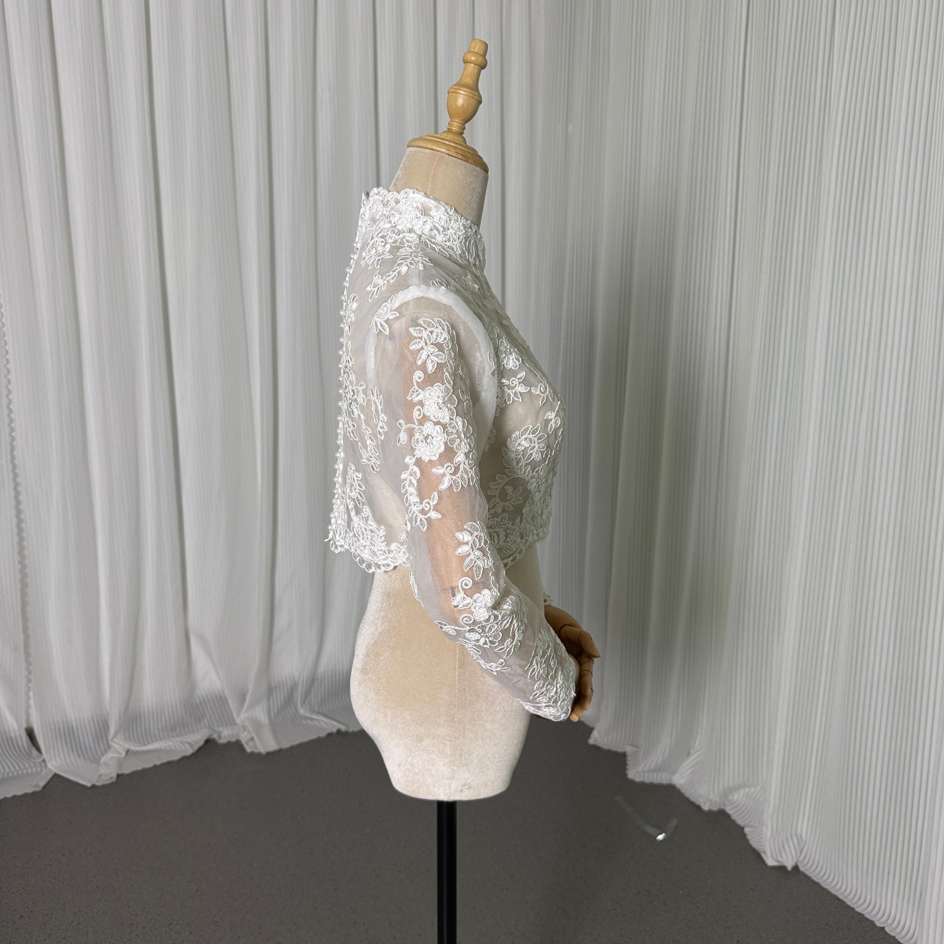 送料無料! オフホワイト 繊細なレース ハイネック ロングスリーブ ボレロ 結婚式 前撮り