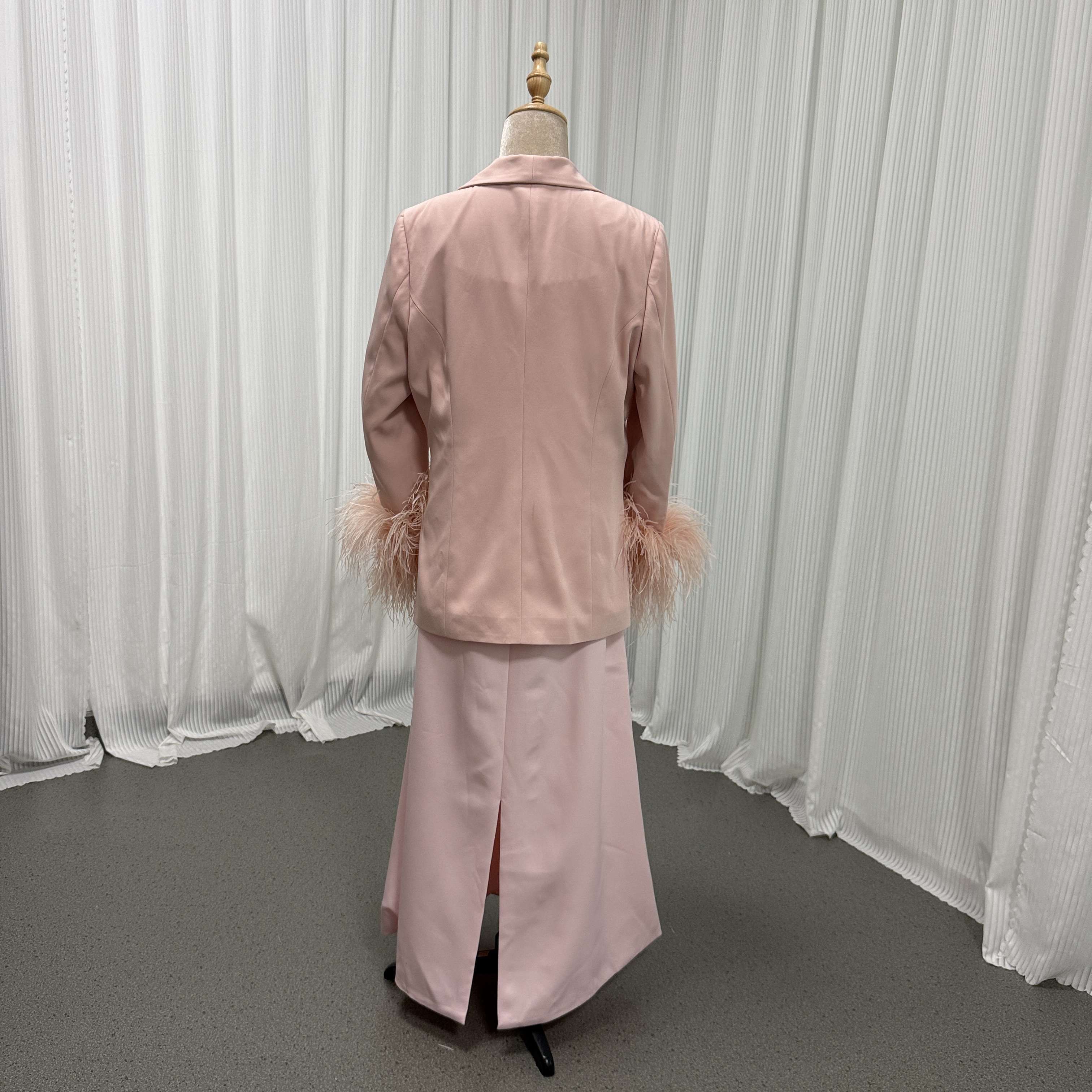 カラードレス ピンク フェザー ロングスリーブ +キャミソール スレンダーライン ワンピース 花嫁 前撮り
